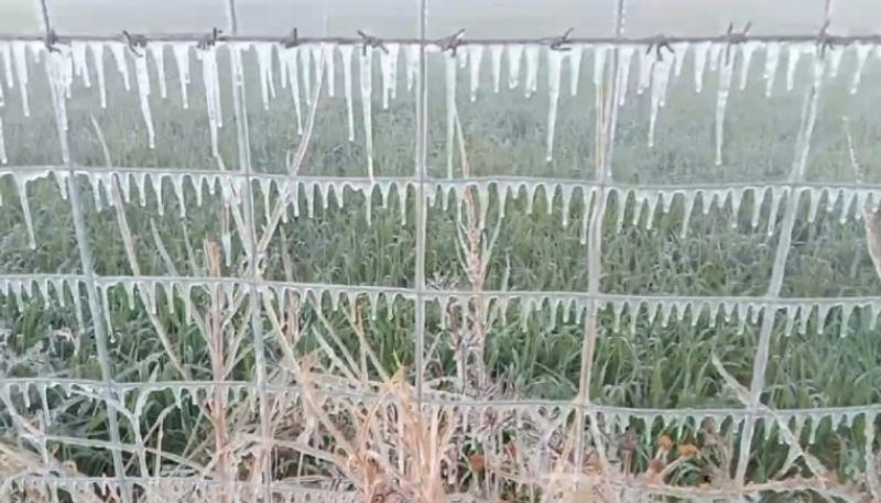 आज राजस्थान में न्यूनतम तापमान की बात करें तो सबसे ठंडा राजस्थान की राजधानी जयपुर का ग्रामीण इलाका जोबनेर रहा है। यहां सुबह -4 डिग्री तापमान दर्ज किया गया है। माइनस 4 डिग्री तापमान के बीच यहां हालात यह है कि खेतों की बाढ़ बंदी पर बर्फ की बूंदे इस कदर जमी हुई देखने को मिली कि जैसे मानो कोई पर्दा लगा हुआ हो।
