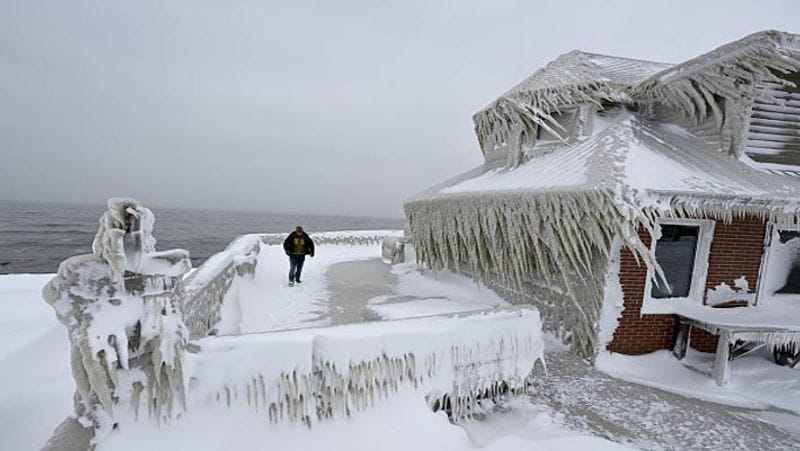 मौसम विशेषज्ञों ने इस बर्फीले तूफान को आर्क्टिक ब्लास्ट नाम दिया है। कई शहरों में तापमान शून्य से 17 डिग्री कम दर्ज किया गया है। इससे मची तबाही देख पूरी दुनिया हैरान है, झीलें, घर, सड़कें, पानी की लाइनें, पेड़-पौधे सबकुछ बर्फ में जम चुका है। (फोटो में : ठंड से जमा नियाग्रा जल प्रपात)