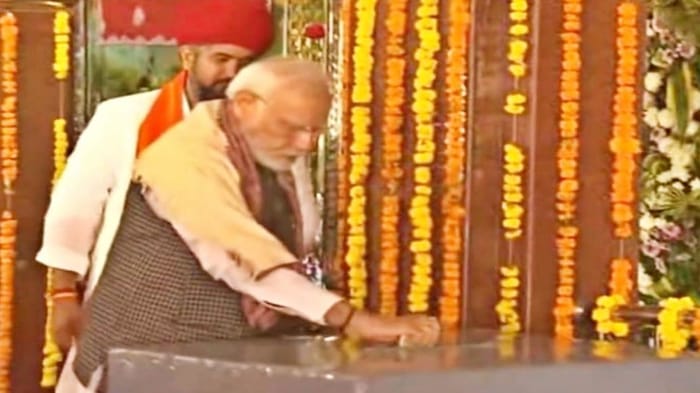 कुछ पल वहां बैठकर मोदी ने मनन किया। इस दौरान महंत पोसवाल ने प्रधानमंत्री को मंदिर की जानकारी दी।