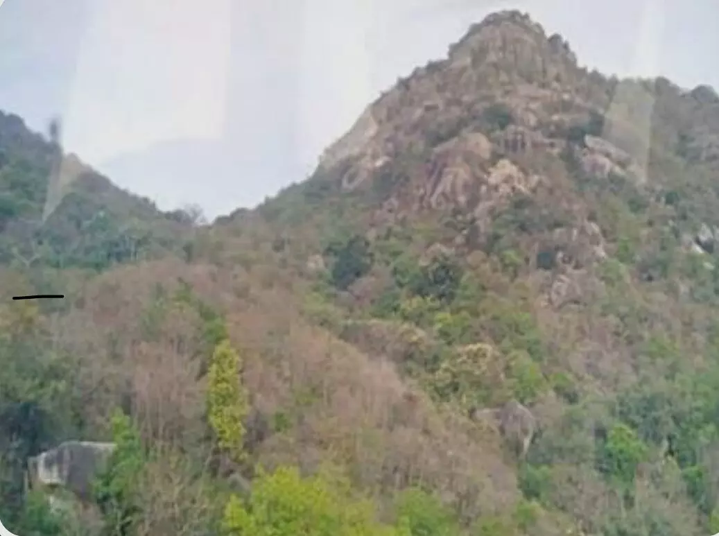 पहाड़ पर एक चांद जैसी आकृति बनी हुई है।