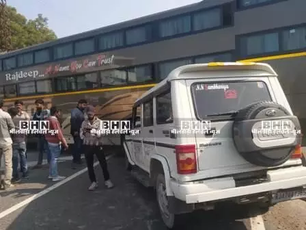 हाइवे पर बोलेरो और ट्रैवल्स बस की भिड़ंत, सांवरियाजी जा रहे नौ श्रद्धालु घायल