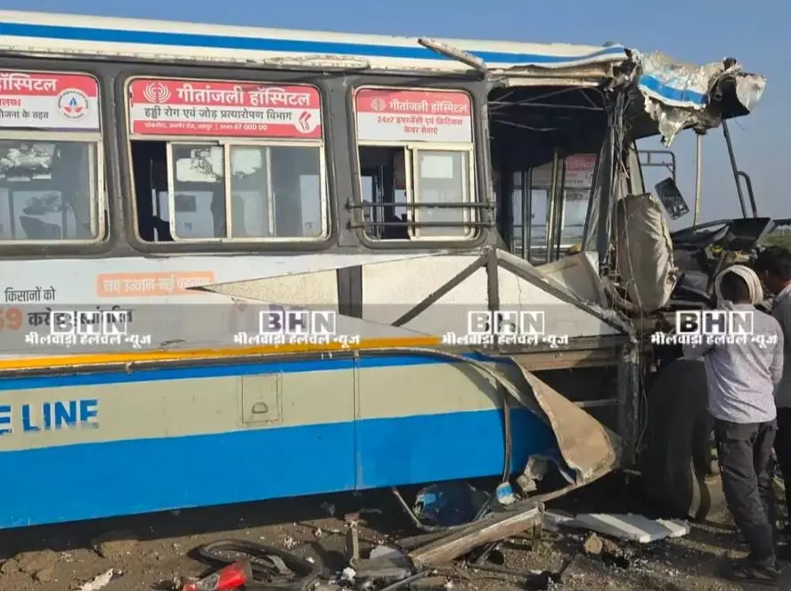 भीलवाड़ा BHN| शाहपुरा-केकड़ी मेगा हाईवे (NH 12) शनिवार सुबह उस वक्त चीखों से गूंज उठा, जब खारी नदी की पुलिया पर एक बेकाबू ट्रेलर और राजस्थान रोडवेज की बस के बीच भिड़ंत हो गई। टक्कर इतनी भीषण थी कि रोडवेज बस की ड्राइवर साइड का हिस्सा लोहे के मलबे में तब्दील हो गया।