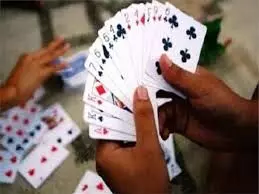 स्कूल दीवार की ओट में ताश के पत्तों पर चल रहा था जुआ, छह आरोपी दबोचे,13830 रुपये जब्त