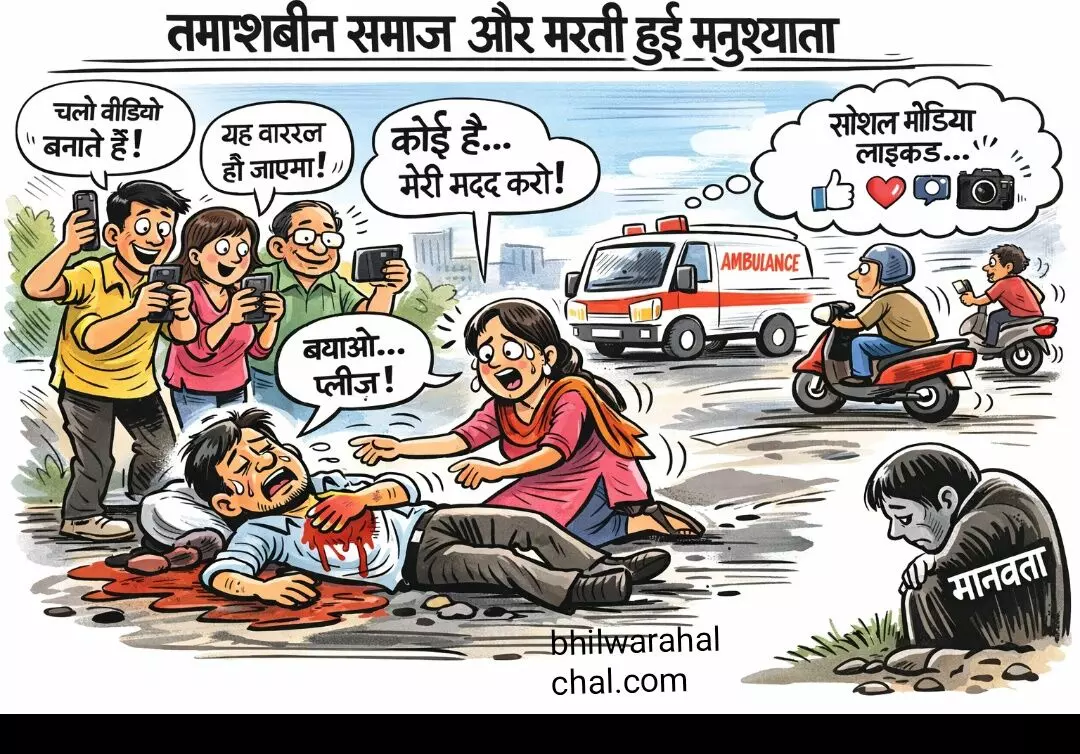आज मनुष्यता की सबसे बड़ी त्रासदी यह नहीं है कि हादसे हो रहे हैं, बल्कि यह है कि हम उन हादसों को देखने का तरीका बदल चुके हैं। सड़क पर कोई गिरता है, तड़पता है, मदद के लिए पुकारता है और आसपास खड़े लोग सबसे पहले मोबाइल निकालते हैं। किसी की सांसें टूट रही होती हैं और हमारे हाथों में रिकॉर्ड बटन चल रहा होता है। यह दृश्य अब अपवाद नहीं रहा, बल्कि हमारी नई सामाजिक आदत बन चुका है।