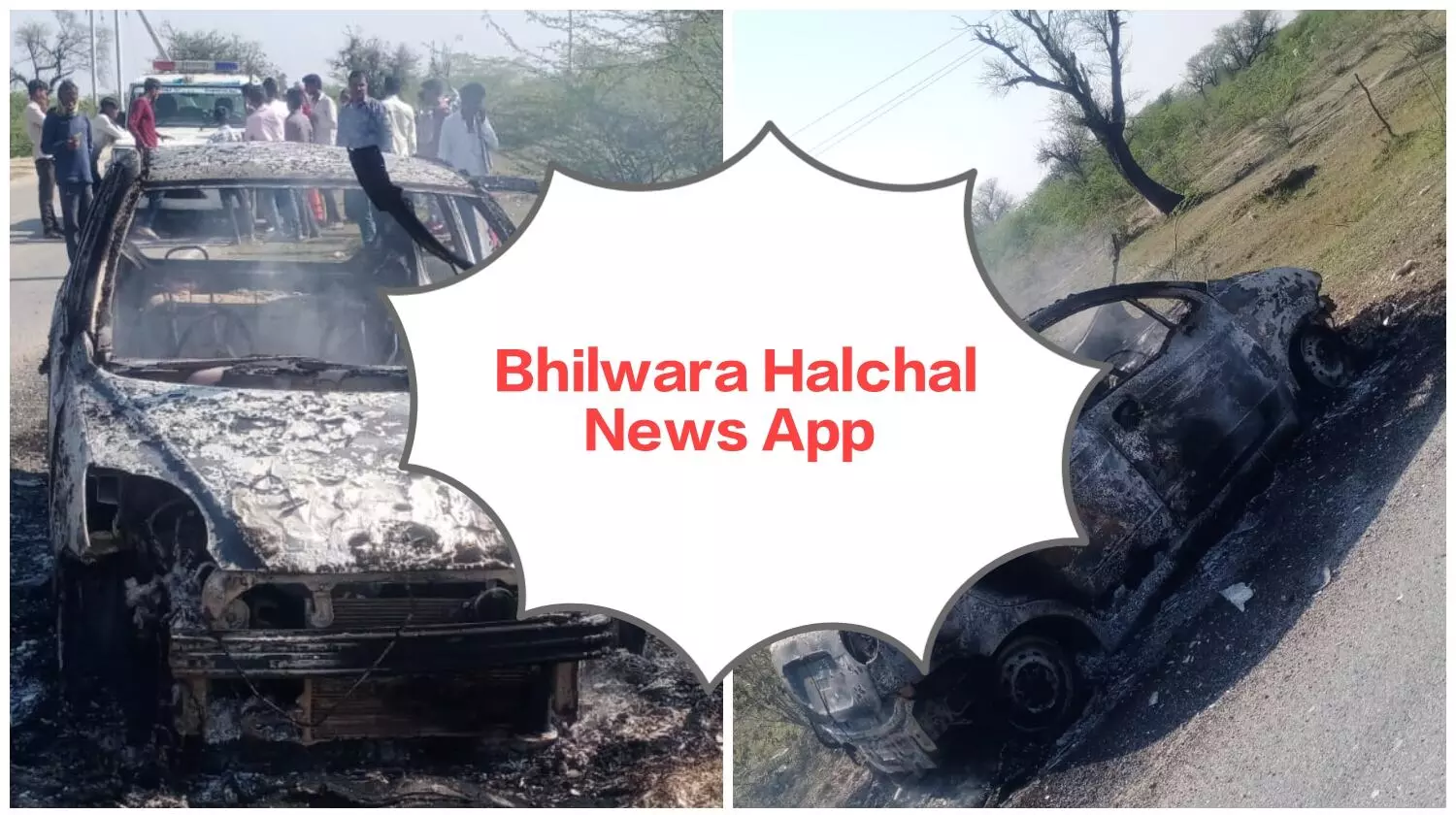 भीलवाड़ा में सड़क पर दौड़ती 'अल्टो' बनी आग का गोला:: बेटे ने मौत के मुंह से खींच बचाई मां और महिला की जान, मची चीख-पुकार