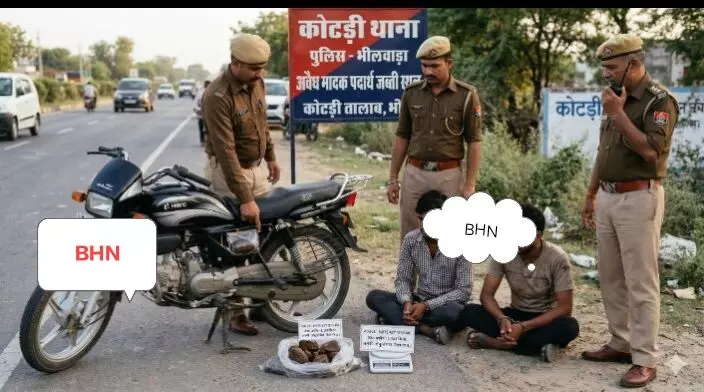 भीलवाड़ा (हलचल)। जिले की कोटड़ी थाना पुलिस ने मंगलवार को मादक पदार्थ तस्करी के खिलाफ बड़ी कार्रवाई करते हुए मध्य प्रदेश के नीमच जिले के दो तस्करों को गिरफ्तार किया है। पुलिस ने इनके कब्जे से 1 किलो 568 ग्राम अवैध अफीम बरामद की है, जिसे बाइक में बड़ी चालाकी से छिपाकर ले जाया जा रहा था।