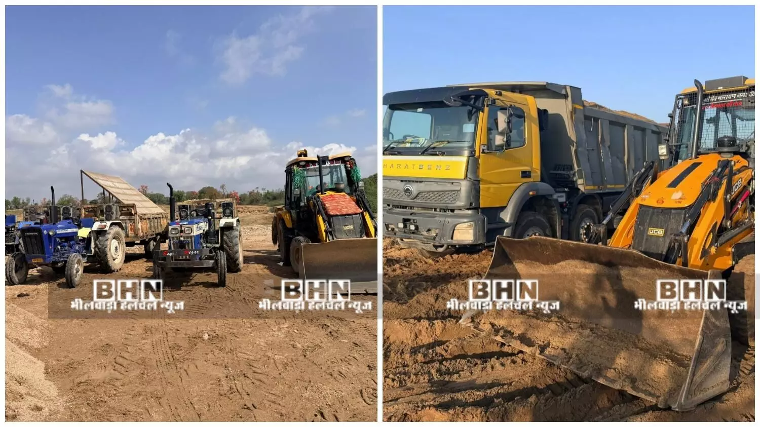 अवैध बजरी खनन और स्टॉक पर कार्रवाई:: कोटड़ी और बीगोद में जेसीबी सहित डंपर व ट्रैक्टर जब्त