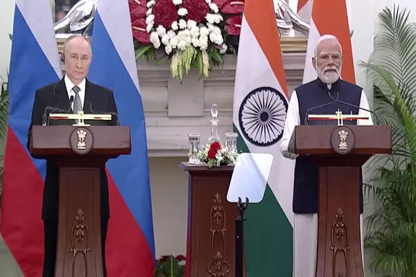नई दिल्ली। प्रधानमंत्री नरेंद्र मोदी और रूस के राष्ट्रपति व्लादिमीर पुतिन ने भारत और रूस के बीच समझौतों का आदान-प्रदान देखा। प्रधानमंत्री नरेंद्र मोदी ने कहा, "आज भारत और रूस के 23 वीं शिखर सम्मेलन में राष्ट्रपति पुतिन का स्वागत करते हुए मुझे बहुत खुशी हो रही है। उनकी यात्रा ऐसे समय में हो रही है जब हमारे द्विपक्षीय संबंध कई ऐतिहासिक मील के पत्थर के दौर से गुजर रहे हैं। ठीक 25 वर्ष पहले राष्ट्रपति पुतिन ने हमारी रणनीतिक साझेदारी की नींव रखी थी। 15 वर्ष पहले 2010 में हमारे साझेदारी को विशेष और विशेषाधिकार प्राप्त रणनीतिक का दर्जा मिला। पिछले ढाई दशक से उन्होंने अपने नेतृत्व से इन संबंधों को निरंतर सिंचा है। हर परिस्थिति में उनके नेतृत्व ने आपसी संबंधों को नई ऊंचाई दी है। भारत के प्रति इस गहरी मित्रता और अटूट प्रतिबद्धता के लिए मैं राष्ट्रपति पुतिन का आभार व्यक्त करता हूं।' 23वें भारत-रूस सालाना समिट के बाद, पीएम मोदी ने कहा, "पिछले 8 दशकों में, दुनिया ने कई उतार-चढ़ाव देखे हैं। मानवता को कई चुनौतियों और संकटों से गुज़रना पड़ा है। और इन सबके बीच, भारत-रूस की दोस्ती एक ध्रुव तारे की तरह अडिग रही है..."