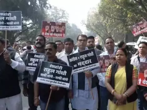 भाजपा का देशभर में कांग्रेस के खिलाफ प्रदर्शन, राहुल गांधी पर निशाना, दिखाये काले झण्डे