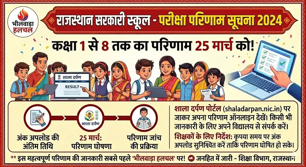 जयपुर। राजस्थान के सरकारी स्कूलों में पढ़ रहे लाखों विद्यार्थियों के लिए बड़ी खबर है। शिक्षा विभाग ने वार्षिक परीक्षा परिणामों को लेकर अपनी तैयारियां अंतिम चरण में पहुंचा दी हैं। विभाग द्वारा जारी नए दिशा-निर्देशों के अनुसार, कक्षा 1 से 8 तक के विद्यार्थियों का परीक्षा परिणाम आगामी 25 मार्च को घोषित किया जाएगा। इसके लिए सभी सरकारी विद्यालयों को शाला दर्पण पोर्टल पर विद्यार्थियों के अंक समयबद्ध तरीके से दर्ज करने के सख्त निर्देश दिए गए हैं।