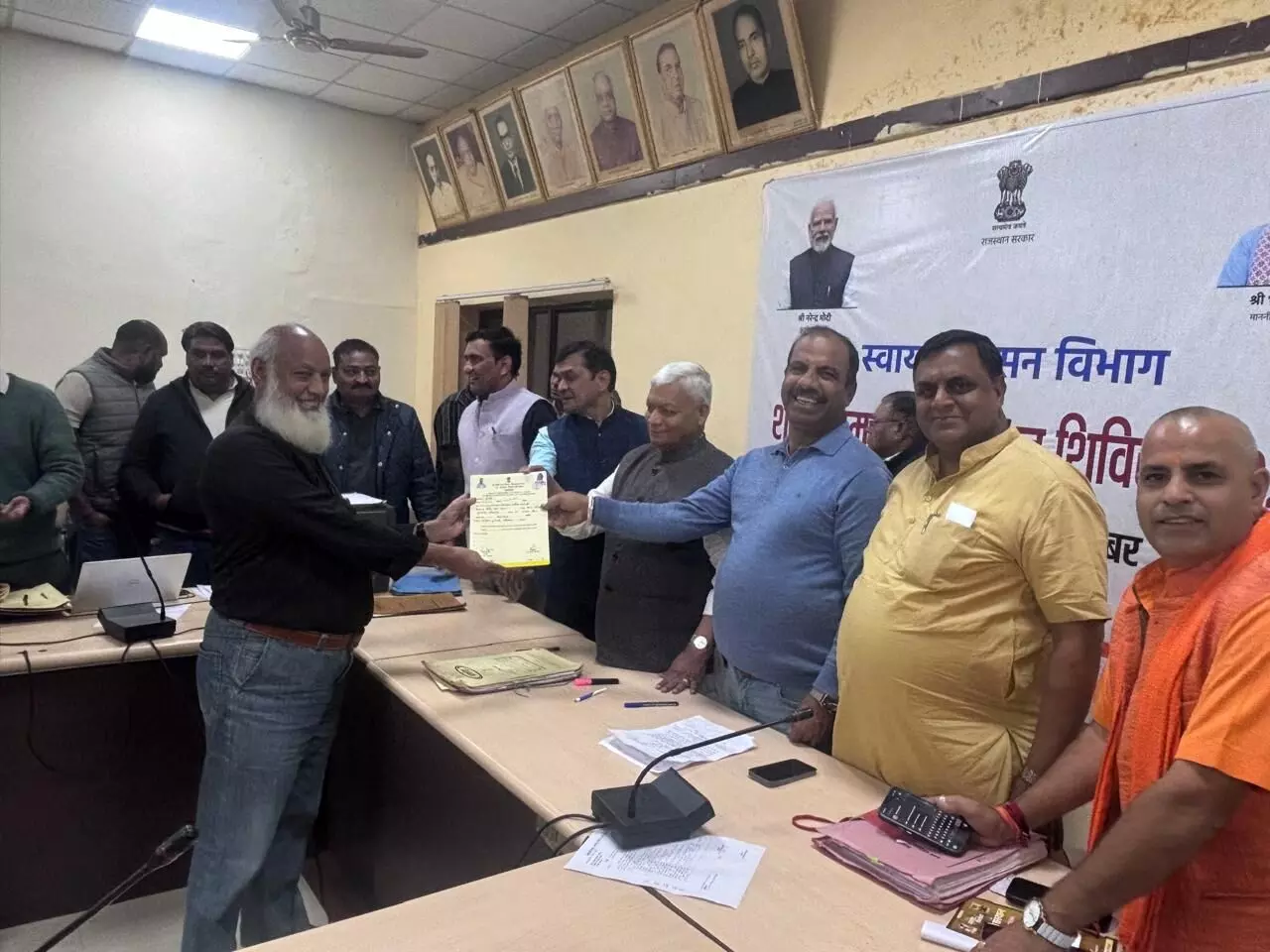 भीलवाड़ा। शहरी समस्या समाधान शिविर 2025 के अंतर्गत नगर निगम परिसर में आमजन को राहत देने के उद्देश्य से पट्टा वितरण एवं विभिन्न सेवाओं से जुड़े प्रकरणों का निस्तारण किया गया। नगर निगम आयुक्त हेमाराम चौधरी ने बताया कि आयोजित कार्यक्रम में सांसद दामोदर अग्रवाल और महापौर की उपस्थिति में नागरिकों को पट्टे और अन्य आवश्यक दस्तावेज सौंपे गए। शिविर के दौरान धारा 69 ए के अंतर्गत कुल 53 पट्टों का वितरण किया गया। इसके साथ ही 16 भवन मानचित्र स्वीकृति के मामलों का निस्तारण कर आवेदकों को स्वीकृतियां प्रदान की गईं। निर्माण अवधि विस्तार से जुड़े पांच प्रकरणों का समाधान किया गया, जबकि नामांतरण के 15 मामलों में प्रमाण पत्र जारी किए गए। भूखंडों के उपविभाजन के चार, भू उपयोग परिवर्तन के छह प्रकरण भी निपटाए गए। इसके अलावा जन्म और मृत्यु प्रमाण पत्र से संबंधित 922 मामलों का निस्तारण किया गया। प्रधानमंत्री स्व निधि योजना के तहत 85, सड़क मरम्मत के 12, नाली मरम्मत के 15, नई स्ट्रीट लाइट लगाने के 40 तथा स्ट्रीट लाइट मरम्मत के 112 प्रकरणों का समाधान किया गया। शिविर में निस्तारित सभी मामलों के प्रमाण पत्र सांसद और महापौर द्वारा आम नागरिकों को वितरित किए गए, जिससे लोगों को एक ही स्थान पर कई सेवाओं का लाभ मिला।