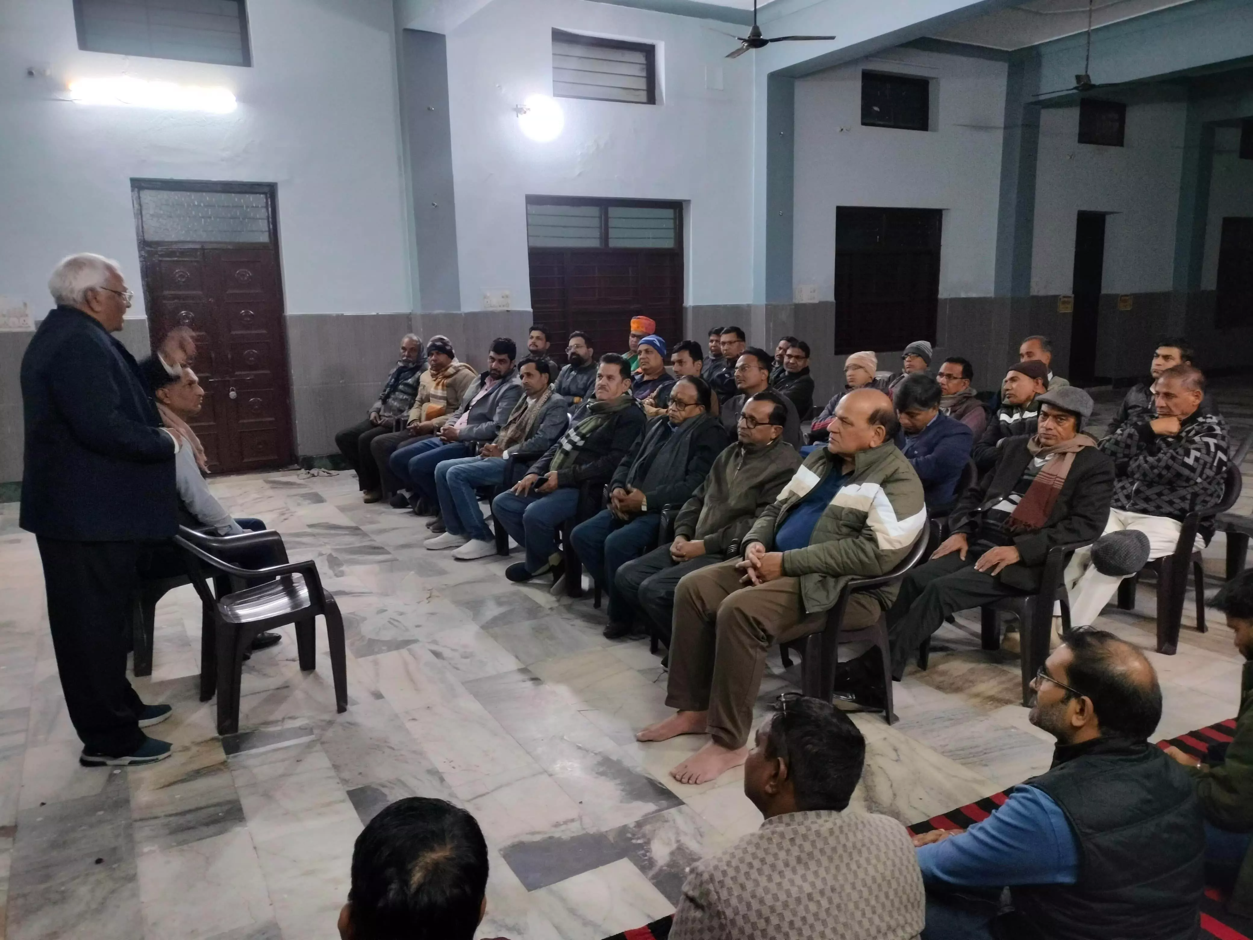 भीलवाड़ा सवाई भोज नगर की राम धाम बस्ती में आगामी 25 जनवरी 2026, रविवार को होने वाले भव्य व दिव्य विशाल हिंदू सम्मेलन की तैयारियों को लेकर समाज जनों के साथ बैठक संपन्न हुई बैठक में आयोजन को सफल बनाने हेतु अलग-अलग कार्यों की समितियां बनाकर सभी को जिम्मेदारी सौंपी गई आजाद नगर के सुखवाल भवन में आयोजित इस बैठक की अध्यक्षता रामधाम बस्ती के अध्यक्ष व उद्योगपति श्री राजेंद्र प्रसाद ओस्तवाल ने की उन्होंने अपने संबोधन में बताया कि हिंदू समाज को विराट संगठन में पिरोना आज की महती आवश्यकता है हिंदू समाज की विशेषता है कि वह संपूर्ण संसार को शांति, करुणा एवं अहिंसा के माध्यम से संपूर्ण विश्व का कल्याण करने के लिए इच्छुक है, किंतु इसके लिए शक्ति की साधना करना आवश्यक है बैठक में मुख्य वक्ता भीलवाड़ा विभाग सह कार्यवाह श्री भगवान दास जी जीनगर ने कहा कि राष्ट्रीय स्वयंसेवक संघ के शताब्दी वर्ष के उपलक्ष में संगठन पांच आयामों पर अधिक जोर दे रहा है जिनमें सामाजिक समरसता,कुटुंब प्रबोधन,पर्यावरण का बचाव,स्वदेशी की प्रेरणा,नागरिक कर्तव्य,उन्होंने इन विषयों पर विस्तार से संबोधित करते हुए कहा कि इन परिवर्तनों से धीरे-धीरे समाज में बहुत बड़ा बदलाव आएगा, इसलिए इसका सभी को संकल्प लेना चाहिए स्वामी विवेकानंद जयंती पर कविता का पाठ कार्यक्रम के अंत में सेवानिवृत्त शिक्षाविद् एवं उपनिदेशक श्री प्रहलाद जी पारीक ने युवा दिवस (स्वामी विवेकानंद जी की जयंती) के अवसर पर एक सुंदर कविता प्रस्तुत की इस बैठक में सभी उप-बस्तियों के सह-संयोजक एवं समाज जनों की गौरवमयी उपस्थिति रही