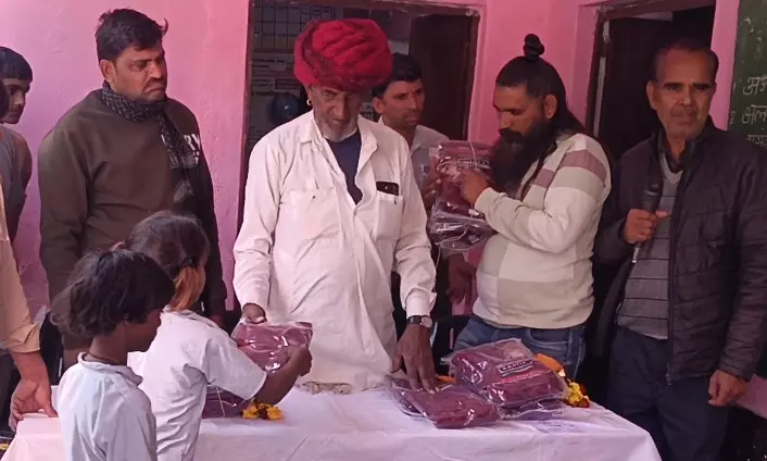 भीलवाड़ा/ राजकीय प्राथमिक विद्यालय औंकारपुरा एवं धुलखेड़ा में मकर संक्रांति पर्व पर भामाशाह द्वारा 65 स्वेटर जर्सी वितरित किए गए/ कवि दीपक पारीक, नारायण भदाला, शहीद भगत सिंह गोशाला के पदाधिकारी, smc अध्यक्ष किशन गाडरी, कैलाश माली, भैरु लाल माली, लेहरू जाट, मांगू माली, ओमप्रकाश माली और स्कूल से हरकलाल सेन, राधेश्याम सुथार, प्रियंका शेखावत, मैना गोधा आदि मौजूद रहे/