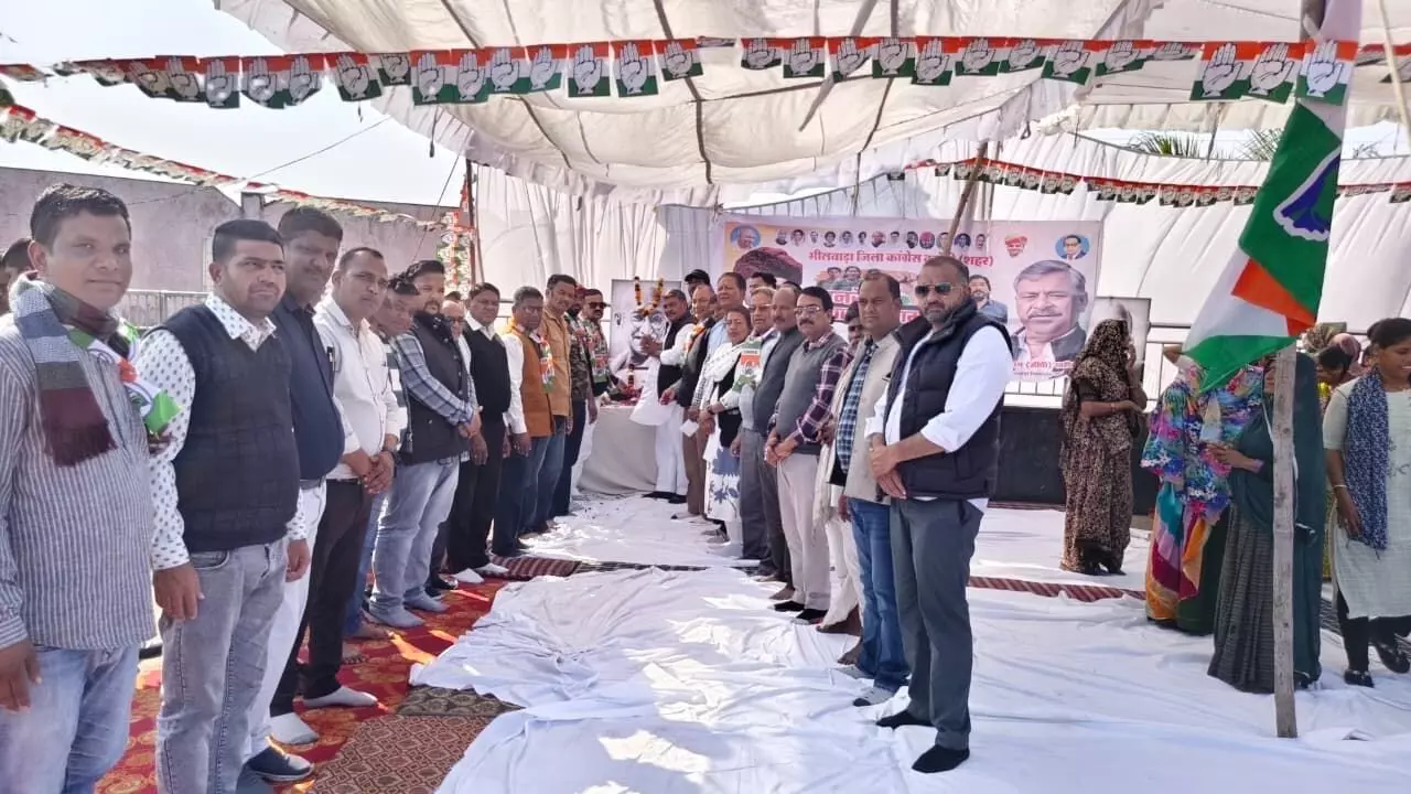 भीलवाड़ा | केंद्र सरकार द्वारा मनरेगा कानून को कमजोर करने के प्रयासों के विरोध में कांग्रेस ने भीलवाड़ा में जोरदार प्रदर्शन किया। जिला कांग्रेस कमेटी (शहर) के तिलक मंडल ने मनरेगा बचाओ आंदोलन के तहत अंहिसा सर्कल चौराहा पर सुबह 11 बजे से दोपहर 2 बजे तक एक दिवसीय धरना-अनशन का आयोजन किया।