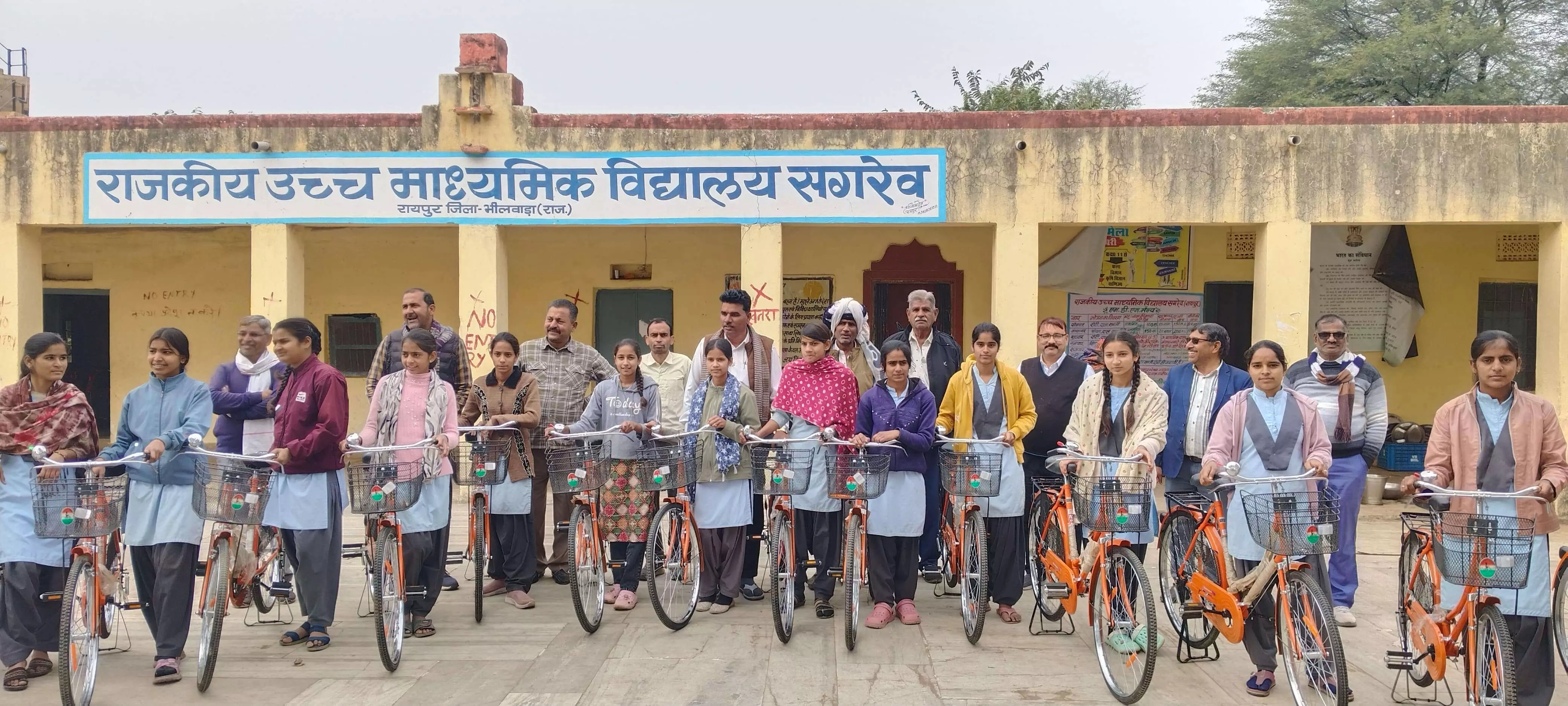 रायपुर किशन खटीक. सगरेव 29 जनवरी श को राज्य सरकार की नि:शुल्क साइकिल वितरण योजना के तहत राजकीय उच्च माध्यमिक विद्यालय सगरेव में कक्षा 9 की 22 बालिकाओं को जनप्रतिनिधि ईश्वर लाल गुर्जर , विधायक प्रतिनिधि हीरा लाल गुर्जर , विधायक प्रतिनिधि उमराव सिंह बड़वा,SMC अध्यक्ष भैरू लाल सालवी, कार्यवाहक प्रधानाचार्य विक्की कुमार और विद्यालय स्टाफ की उपस्थिति में साइकिल वितरित की गई। इस समय विद्यालय स्टाफ प्रदीप कुमार व्याख्याता, रामेश्वर लाल कुमावत व्याख्याता,घनश्याम पारीक ,मंजूर हुसैन,श्याम लाल माली,नंद लाल कुमावत,तेज बहादुर सिंह, प्रकाश चंद्र जाट,रामरतन मीणा, रविंद्र सिंह चुंडावत,गौतम मेघवाल, बाबू लाल मीणा, लेखराज मीणा,भंवर लाल कुमावत ,भागीरथ गुर्जर और सरला माहेश्वरी,सैयद हुसैन मोची स्टाफ सदस्य उपस्थित थे।