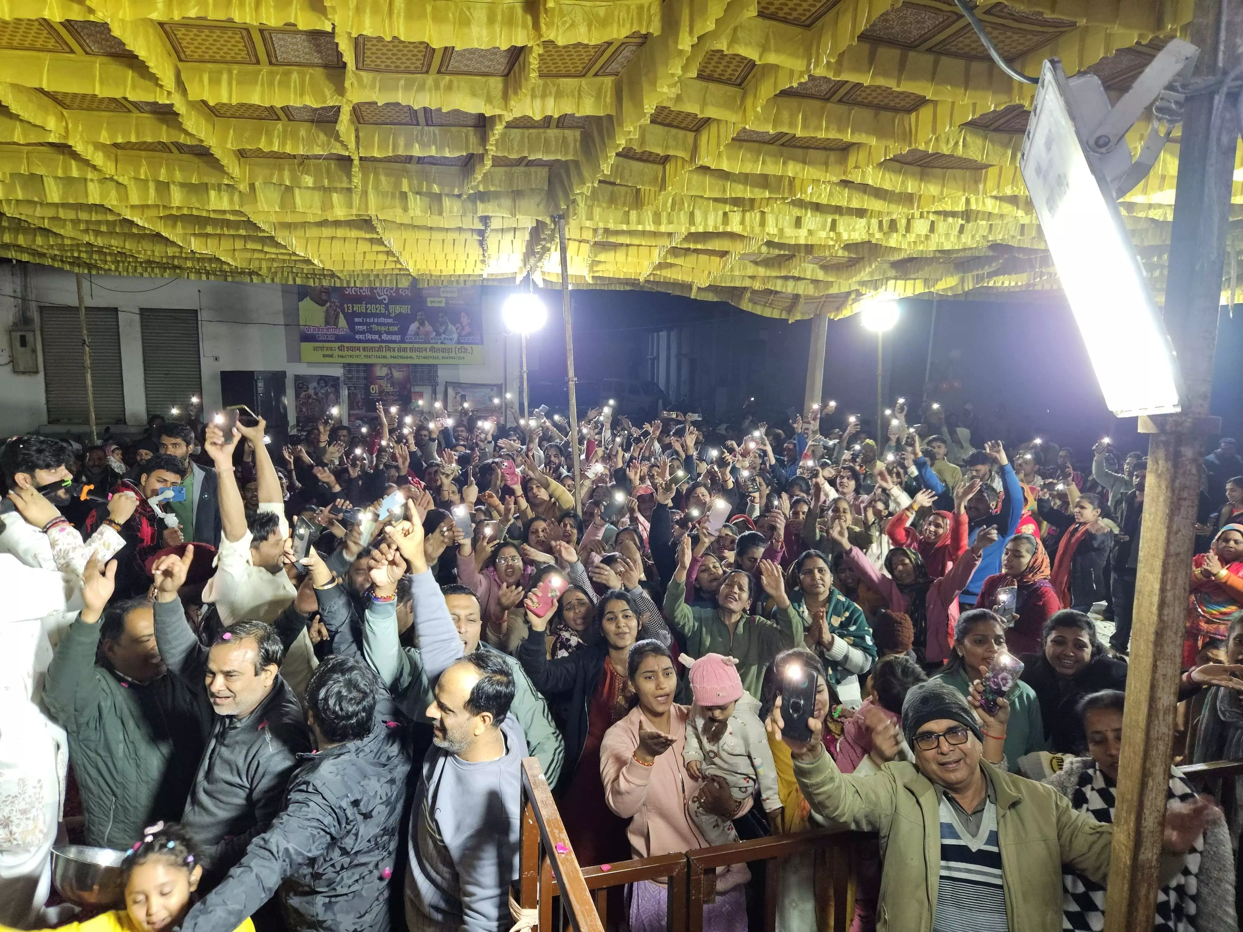 भजन गायक अभि अनुज पारेख (भीलवाड़ा) ने “हारे का सहारा श्याम हमारा”, “खाटू वाले श्याम तेरी जय हो” एवं “श्याम तेरी बंसी पुकारे” जैसे भावपूर्ण भजनों की प्रस्तुति देकर श्रद्धालुओं को भाव-विभोर कर दिया। बच्ची किसा पारीख ने भी भजनों से समा बांधा ।मंदिर परिसर देर रात तक श्याम नाम के जयकारों से गूंजता रहा।
