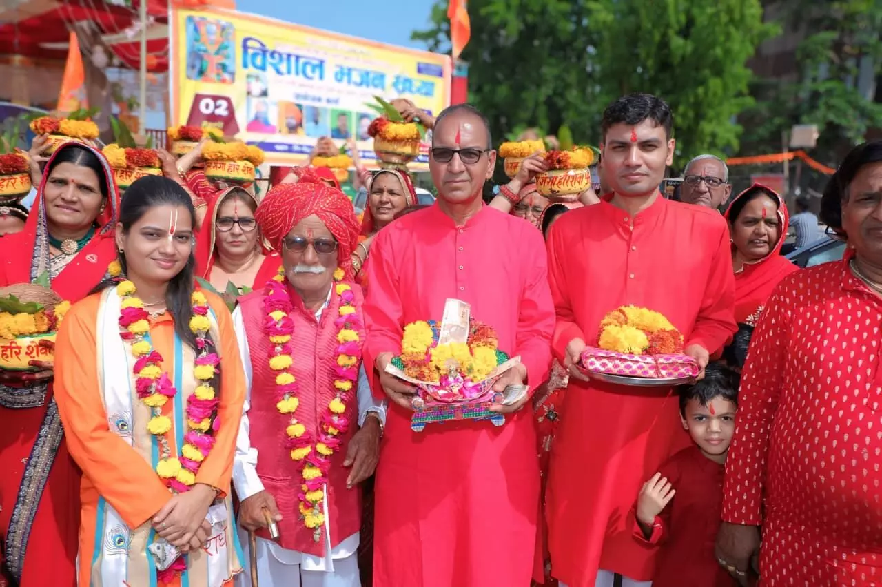 भीलवाड़ा । धर्मनगरी भीलवाड़ा के कमला विहार स्थित राधा कृष्णा मंदिर पार्क में 'नानी बाई रो मायरो' कथा का भव्य शुभारंभ हुआ। नानी बाई रो मायरो महोत्सव सेवा समिति के तत्वावधान में आयोजित इस धार्मिक अनुष्ठान की शुरुआत गाजे-बाजे के साथ निकली भव्य कलश यात्रा से हुई।