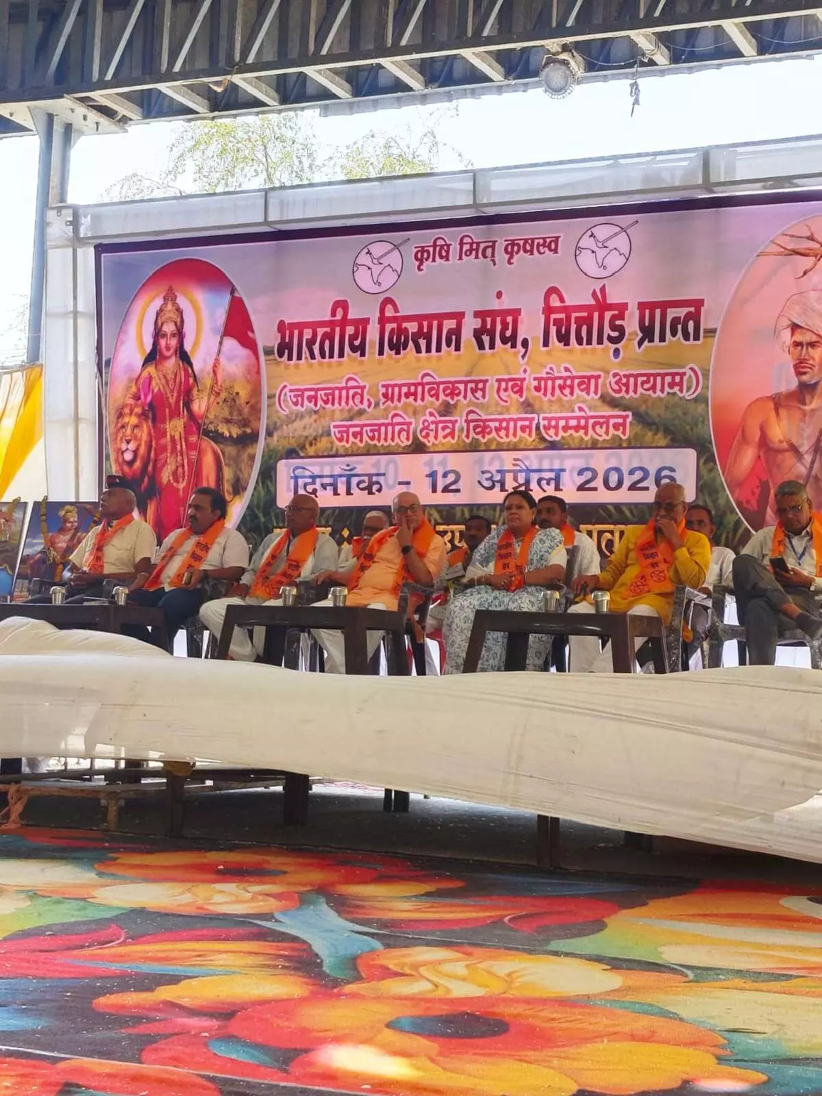 लाडपुरा/भीलवाड़ा (शिव लाल जांगिड़)। भारतीय किसान संघ चित्तौड़गढ़ प्रांत के तत्वावधान में रविवार को प्रतापगढ़ कृषि उपज मंडी परिसर में विशाल 'जनजातीय क्षेत्र किसान सम्मेलन' का आयोजन किया गया। इस सम्मेलन के साथ ही भारतीय किसान संघ की तीन दिवसीय समीक्षा योजना बैठक का भी समापन हुआ। जिला प्रचार प्रमुख श्यामलाल सुथार ने बताया कि इस अवसर पर धूणी चौपाल कर किसानों ने पारंपरिक रीति से सरकार को सुबुद्धि देने की प्रार्थना की। उन्होंने माही और जाखम बांधों का पानी क्षेत्र के सूखे खेतों तक पहुँचाने की मांग की। इस दौरान मंडी पहुंचने पर व्यापारियों ने पुष्प वर्षा कर किसानों का आत्मीय स्वागत किया।