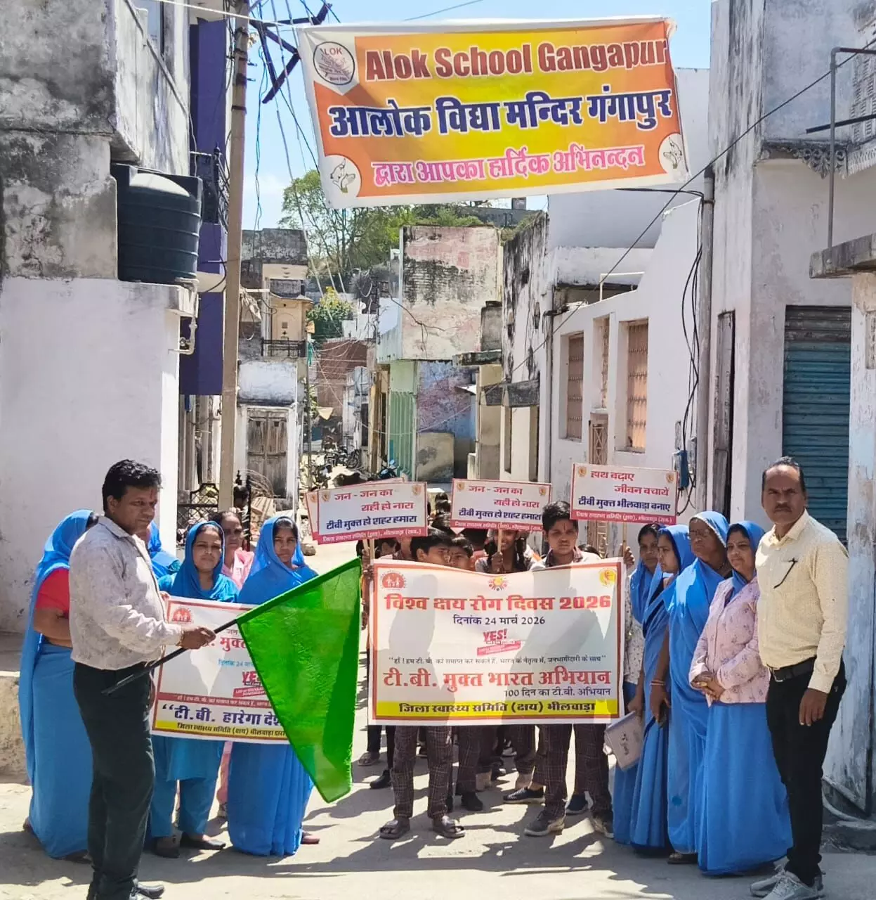 गंगापुर के आलोक स्कूल में टीबी मुक्त भारत अभियान के तहत 100 दिवसीय रैली का आयोजन