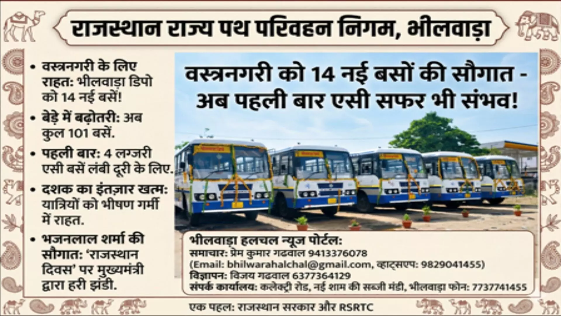 वस्त्रनगरी भीलवाड़ा के रोडवेज बेड़े में शामिल हुईं 14 नई बसें, पहली बार मिलीं 4 लग्जरी एसी बसें