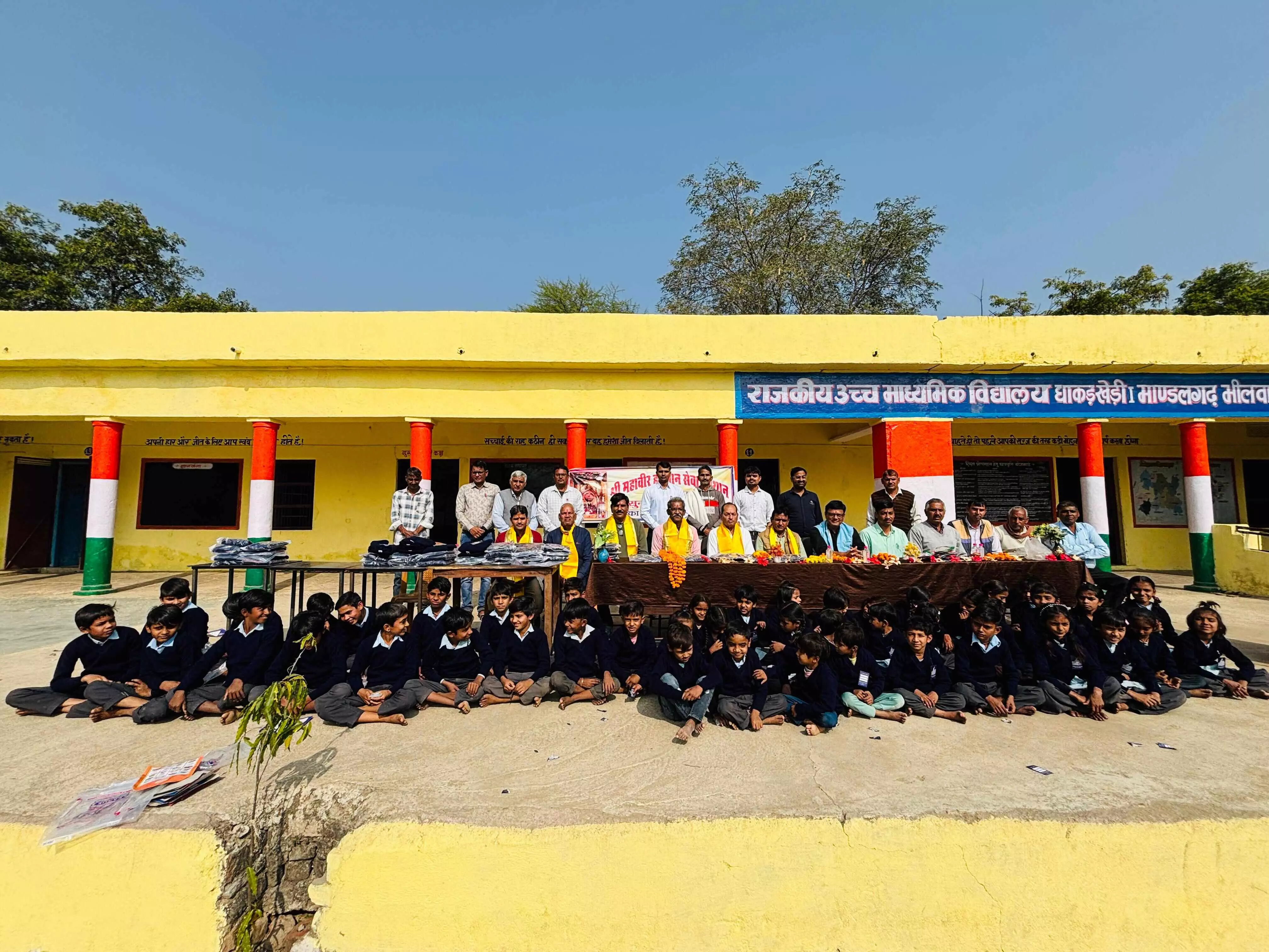 मांडलगढ़ उपखंड क्षेत्र के राजकीय उच्च माध्यमिक विद्यालय धाकड़ खेड़ी में महावीर हनुमान सेवा संस्थान (सुंदरकांड मंडल) भीलवाड़ा के तत्वाधान में गरीब एवं अभावग्रस्त बालकों हेतु निशुल्क स्वेटर वितरण कार्यक्रम किया गया। कार्यक्रम का शुभारंभ विद्यालय के प्रधानाचार्य इरशाद आलम काजी, मुख्य अतिथि महावीर हनुमान सेवा संस्थान अध्यक्ष राजेंद्र मुंदडा ने मां सरस्वती के माल्यार्पण कर एवं दीप प्रज्वलित कर कार्यक्रम का शुभारंभ किया। उप प्रधानाचार्य भंवर लाल बाजिया ने सेवा संस्थान की टीम के सदस्यों का मेवाड़ी परंपरा अनुसार दुप्पटा एवं माला पहनकर स्वागत किया। संस्थान अध्यक्ष ने संबोधित करते हुए कहा कि हमारे संस्थान का मुख्य उद्देश्य दिन दुखी एवं गरीबों की सेवा करना है जो हम 2006 से करते आ रहे हैं। जिसमें रक्तदान शिविर आयोजन ,सामाजिक सरोकारों से जुड़े अनेक कल्याणकारी कार्य किए जाते हैं। आज विद्यालय में कुल 151 गरीब बालकों को स्वेटर वितरण किया गया। विद्यालय प्रधानाचार्य ने संस्थान के द्वारा किए गए किए गए सहयोग के लिए समस्त संस्थान टीम का आभार व्यक्त किया। कार्यक्रम का मंच संचालन राधेश्याम व्यास ने किया। इस दौरान विद्यालय के शिक्षक एवं अनेकों अभिभावक भी मौजूद रहे।