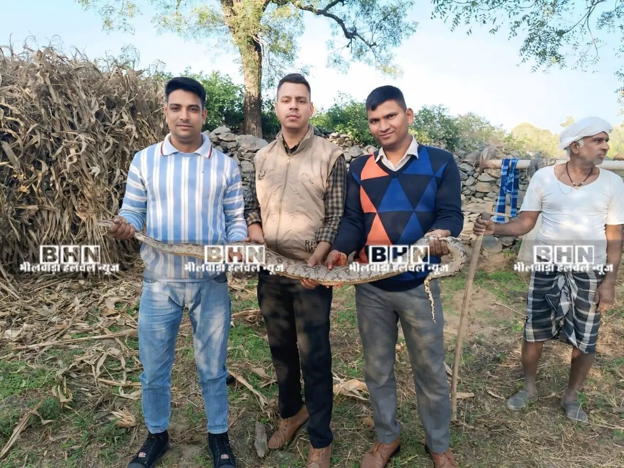 गुरला:-(बद्री लाल माली ) गुरला क्षेत्र के ग्राम पंचायत कोचरिया के सुगम चंद्र कुमावत के खेत पर बने बाड़े में ख़ाकले के अंदर अजगर दिखा सुगन कुमावत ने अजगर की सूचना वन विभाग में रेंजर प्रशांत भट्ट की दी,, रेंजर प्रशांत भटृ के आदेशानुसार विभाग से रेस्क्यू टीम के वनरक्षक सोहन लाल वनरक्षक शंकर लाल खटीक वनरक्षक दिनेश कुमार रैगर एवं वाइल्ड एंड स्ट्रीट ऐनिमल रेस्क्यू सोसायटी के वन्य जीव रक्षक नारायण लाल बैरवा मौके पर पहुंच कर अजगर का सुरक्षित रेस्क्यू किया अजगर 6फिट लम्बा था, बैरवा ने बताया कि यह इंडियन रॉक पाइथन को हिंदी में भारतीय अजगर कहा जाता है। यह भारत का एक विशाल, विषहीन साँप है, जिसे ब्लैक-टेल्ड पाइथन और एशियन रॉक पाइथन के नाम से भी जाना जाता है। यह शिकार को जकड़कर और कुंडली मारकर मारता,बाद में वन विभाग के निर्देशानुसार वनरक्षक शंकर खटीक वनरक्षक दिनेश रैगर वनरक्षक सोहन लाल वन्य जीव रक्षक नारायण लाल बैरवा की मौजूदगी में जंगल में छोड़ दिया गया।।