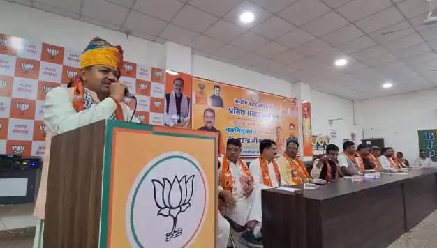 भीलवाड़ा । भाजपा जिला संगठन भीलवाड़ा के नेतृत्व एवं ओबीसी मोर्चा के तत्वाधान शुक्रवार को भाजपा जिला कार्यालय पर श्रमिक संवाद सम्मेलन एवं केंद्रीय व राज्य बजट 2026 परिचर्चा का आयोजन ओबीसी मोर्चा नव नियुक्त प्रदेशाध्यक्ष महेंद्र कुमावत के मुख्य आतिथ्य, भाजपा जिला अध्यक्ष प्रशांत मेवाड़ा की अध्यक्षता मे किया गया, इस अवसर पर प्रदेश मंत्री ओबीसी मोर्चा नंदलाल गुर्जर, प्रदेश कार्यालय मंत्री रामेश्वर लाल गुर्जर,जिला प्रभारी ओबीसी मोर्चा बद्रीलाल सांमरिया, प्रदेश मॉनिटरिंग सदस्य विजेंद्र चौधरी, जयपुर शहर जिला अध्यक्ष चेतन कुमावत, वरिष्ठ नेता पेंटर सूरज जिला अध्यक्ष ओबीसी मोर्चा भगवत सिंह राठौड़, उप जिला प्रमुख शंकर गुर्जर,राजेश सेन मंचासीन थेे।