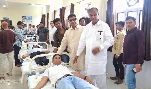 आसींद (मंजूर)। संविधान निर्माता डॉ. भीमराव अंबेडकर की जन्म जयंती सप्ताह के उपलक्ष्य में आज विधानसभा क्षेत्र की ग्राम पंचायत अटाली स्थित सामुदायिक स्वास्थ्य केंद्र (सीएचसी) पर एक विशाल रक्तदान शिविर का आयोजन किया गया। शिविर में सुबह से ही युवाओं और स्थानीय ग्रामीणों में भारी उत्साह देखने को मिला, जिससे अस्पताल परिसर में रक्तवीरों का सैलाब उमड़ पड़ा।
