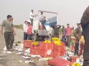बिजौलियां के पास फलों से भरा टेंपो पलटा, दो युवक सुरक्षित बचाए गए