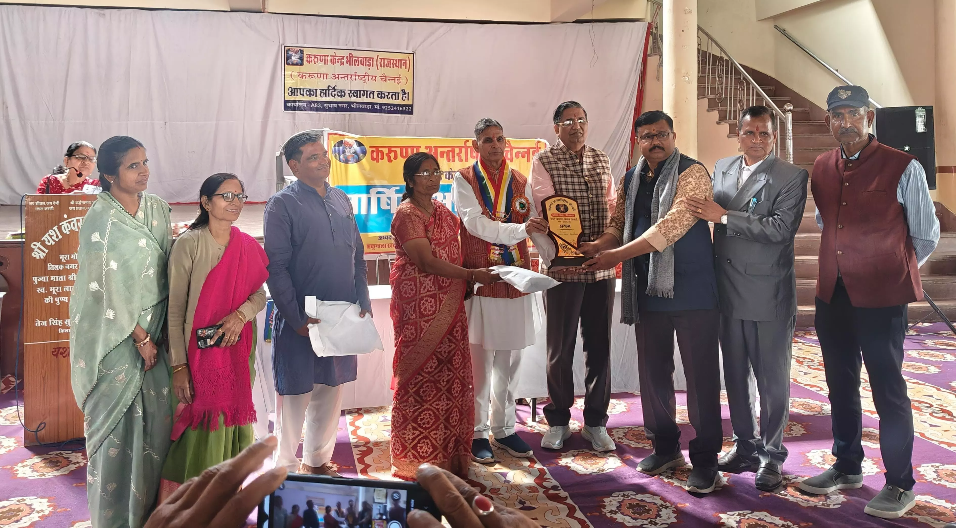 भीलवाड़ा | करुणा अंतरराष्ट्रीय चेन्नई के अंतर्गत भीलवाड़ा में संचालित करुणा केंद्र के तत्वावधान में जिले में संचालित करुणा क्लबों का वार्षिक अधिवेशन आज पीयूष खमेसरा के मुख्य आतिथ्य नोरतन बम्ब की अध्यक्षता तथा शांतिलाल जैन, पुष्पा गोखरू सिम्मी पोखरणा, प्रमिला सूर्या, राष्ट्रीय उपाध्यक्ष पदम छाजेड़ प्रचारक, भूपेश चारण, संरक्षक प्रेम शंकर जोशी के विशिष्ट आतिथ्य मैं यश विहार में संपन्न हुआ। अधिवेशन में जिले में श्रेष्ठ कार्य करने करुणा क्लब में राजकीय उच्च माध्यमिक विद्यालय लांबिया प्रथम राजकीय प्राथमिक विद्यालय भेरू खेड़ा द्वितीय राजकीय उच्च प्राथमिक विद्यालय हांसियास तृतीय तथा राजकीय प्राथमिक विद्यालय धांधोलाई, राज राजकीय प्राथमिक विद्यालय चेची खेड़ा, राजकीय उच्च माध्यमिक विद्यालय सुभाष नगर को पुरस्कार प्रदान कर सम्मानित किया गया। अधिवेशन राष्ट्रीय लोक अदालत सदस्य शांतिलाल जैन ने सभी को प्राणी मात्र के प्रति करुणा भाव रखने का संकल्प दिलाया। महामंत्री निर्मला सिंघवी ने जिले में संचालित करुणा क्लबों की गतिविधियों का विस्तार से वर्णन किया। करुणा केंद्र संरक्षक प्रेम शंकर जोशी के अनुसार अधिवेशन में उपस्थित समस्त करुणा क्लब प्रभारी एवं संस्था प्रधानों का भी करुणा केंद्र की ओर से सम्मान किया गया। सुमित्रा बोथरा, किरण बाफना ने करुणा भाव पर विचार व्यक्त किये। अधिवेशन का सफल संचालन अध्यक्ष शकुंतला खमेसरा ने किया। अधिवेशन में कोषाध्यक्ष संगीता बाफना ,उपाध्यक्ष रेखा पानगडिया, सह मंत्री अशोक सेन, भूपेंद्र पगारिया ,धर्मचंद बाफना, सुरेश सिंघवी, प्रदीप शर्मा, ललित जैन उपस्थित थे। अधिवेशन के अंत में राष्ट्रगान के बाद सभी के लिए राजेंद्र खमेसरा द्वारा शानदार भोजन व्यवस्था की गई।