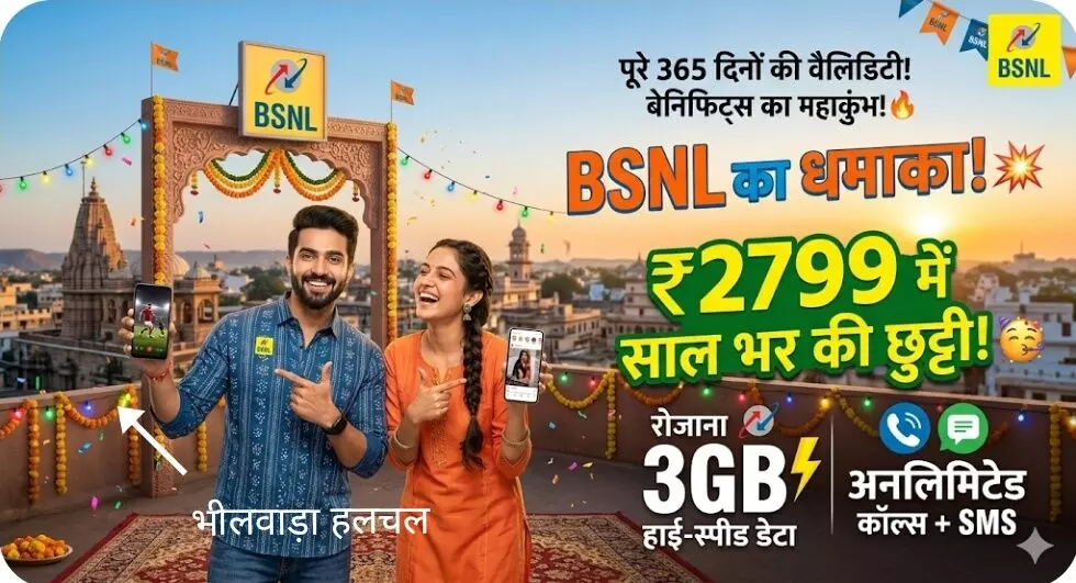 भीलवाड़ा। सरकारी टेलीकॉम कंपनी भारत संचार निगम लिमिटेड (BSNL) ने अपने करोड़ों ग्राहकों को बड़ी सौगात देते हुए एक जबरदस्त एनुअल प्रीपेड प्लान पेश किया है। इस प्लान के आने से उपभोक्ताओं को बार-बार रिचार्ज कराने के झंझट से मुक्ति मिल जाएगी। कंपनी का यह नया 2799 रुपये वाला प्लान लंबी वैलिडिटी और भरपूर डेटा चाहने वाले यूजर्स के लिए गेम-चेंजर साबित हो सकता है।