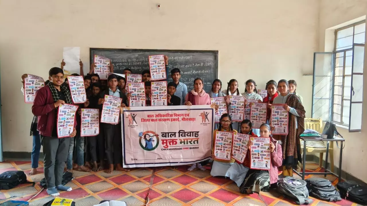 भीलवाड़ा प्रहलाद तेली| बाल विवाह मुक्त अभियान के तहत चलाए जा रहे 100 दिवसीय जागरूकता अभियान के तहत बाल अधिकारिता विभाग एवं जिला बाल संरक्षण इकाई के सहायक निदेशक धर्मराज प्रतिहार के निर्देशानुसार पीएम श्री राजकीय उच्च माध्यमिक विद्यालय हमीरगढ़ एवं महात्मा गांधी राजकीय उच्च माध्यमिक विद्यालय हमीरगढ़, राजकीय बालिका उच्च माध्यमिक विद्यालय हमीरगढ़ में बाल विवाह को मुक्त करने के लिए विद्यालयों में बाल विवाह की रोकथाम के लिए जागरूकता गतिविधि आयोजित की गई एवं बच्चो को बाल विवाह रोकथाम के लिए शपथ दिलाई गई, बच्चो के साथ खेल गतिविधि वाद विवाद गतिविधि, पोस्टर गतिविधि आयोजित की गई गतिविधि के दौरान बच्चो को बाल विवाह रोकथाम के लिए जागरूक किया गया एवं जानकारी दी गई कि सरकार द्वारा बाल विवाह मुक्त अभियान के तहत 100 दिवसीय अभियान चला कर बाल विवाह मुक्त करने के लिए विभिन्न जागरूकता गतिविधि आयोजित की जा रही है। इस गतिविधि में जिला बाल संरक्षण इकाई के संरक्षण अधिकारी अनुराधा तोलंबिया, चाइल्ड हेल्पलाइन 1098 के परियोजना समन्वयक हेमंत सिंह, काउंसलर निर्मला पुरोहित सुपरवाइजर राधेश्याम गुर्जर ने जानकारी प्रदान की एवं बताया गया कि बाल विवाह रोकथाम के लिए चाइल्ड हेल्पलाइन नंबर 1098 पर जानकारी दी जा सकती है। उक्त गतिविधि में प्रिंसिपल एवं अध्यापक मौजूद रहे। गतिविधि में लगभग 750 बच्चो एवं विद्यालय स्टाफ को बाल विवाह मुक्त करने की शपथ दिलाई गई।