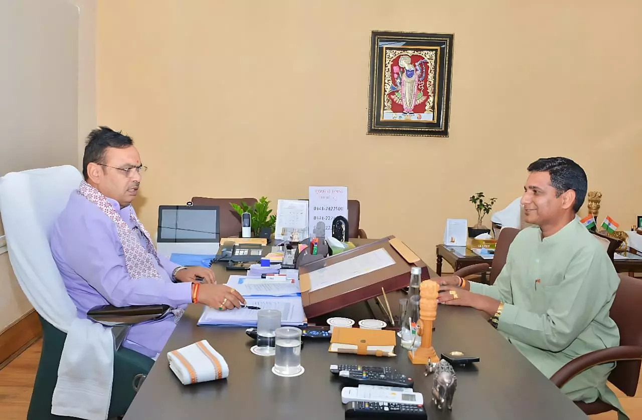 सीएम भजनलाल शर्मा ने भाजपा जिलाध्यक्ष मेवाड़ा से लिया जिले के प्रशासनिक, राजनैतिक और संगठनात्मक कामकाज का फीडबैक