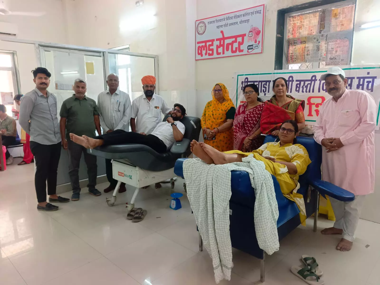 भीलवाड़ा कच्ची बस्ती विकास मंच ने गजेन्द्र जी शर्मा (नसिंग ऑफिसर महात्मा गांधी चिकित्सालय ) की तृतीय पुण्यतिथि पर महात्मा गांधी चिकित्सालय में रक्तदान शिविर का आयोजन किया गया जिसमें मुख्य अतिथि भीलवाड़ा पूर्व UIT चेयरमैन लक्ष्मीनारायण दाढ़ उपस्थित थे कार्यक्रम की शुरूआत पुष्पांजलि अर्पित कर रक्तदान करने के साथ की गई कार्यक्रम में जिला अध्यक्ष गोवर्धन सिंह कटार,जिला महामंत्री पूर्व पार्षद राजेश शर्मा,पूर्व पार्षद धनश्याम सिंघीवाल ,संजना सोनी महिला जिला अध्यक्ष सुनीता स्वर्णकार और रक्तवीर विक्रम दाधीच,उर्मिला व्यास,राजवीर,पीयूष,अंजली शर्मा बृजराज कृष्ण उपाध्याय, चित्तरमल गेंघट ओर कई व्यक्तियों ने रक्तदान किया