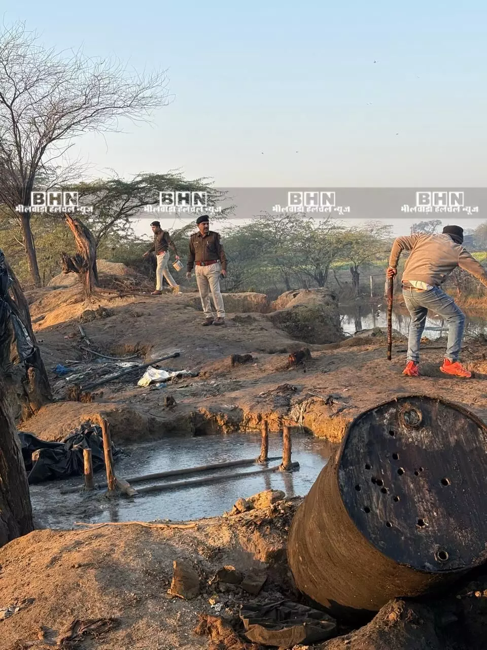 मांडल थाना क्षेत्र के कोठारी नदी क्षेत्र में मुखबिर की सूचना पर आबकारी टीम ने दबिश दी। टीम को देख आरोपी मौके से फरार हो गए। कार्रवाई के दौरान दो जलती हुई भट्टियों को नष्ट किया गया और शराब बनाने के लिए तैयार करीब 700 लीटर वॉश मौके पर फैलाकर नष्ट कर दिया गया।