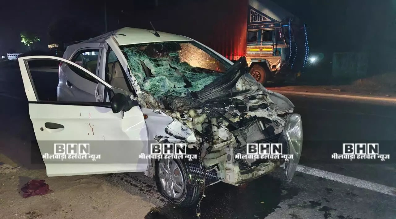 सवाईपुर ( सांवर वैष्णव ):- सवाईपुर कस्बे में कोटड़ी चौराया के निकट बुधवार शाम को एक कंटेनर व कार में आमने-सामने की जोरदार की टक्कर हो गई । जिसमे कार चालक युवक की मौत हो गई । सुचना पर सवाईपुर चौकी पुलिस मौके पर पहुंची, घायल को 108 एंबुलेंस की मदद से जिला चिकित्सालय भेजा । एएसआई प्यार चंद खटीक ने बताया कि भीलवाड़ा कोटा रोड पर सवाईपुर के कोटड़ी चौराहे के पास बुधवार देर शाम भीलवाड़ा से मांडलगढ़ बीगोद की तरफ जा रहे कंटेनर की सामने से आ रही कार से जोरदार की टक्कर हो गई, टक्कर इतनी जबरदस्ती की कार का अगला हिस्सा पूरी तरह से चकनाचूर हो गया, वही इस हादसे में कार चालक पीयूष शर्मा ( सीए ) पिता राम कृष्ण शर्मा निवासी ओल्ड हाउसिंग बोर्ड, शास्त्री नगर, भीलवाड़ा गंभीर रूप से घायल हो गया, गंभीर घायल को सवाईपुर 108 एंबुलेंस के मदद से जिला चिकित्सालय रेफर किया गया । 108 चालक हरि निवास जाट ने बताया कि डॉक्टर ने घायल पीयूष को मृत घोषित किया । पुलिस ने दुर्घटनाग्रस्त वाहनों को हाईवे से हटाया, वही मौके पर ग्रामीणों व राहगीरों की भीड़ जमा हो गई ।।