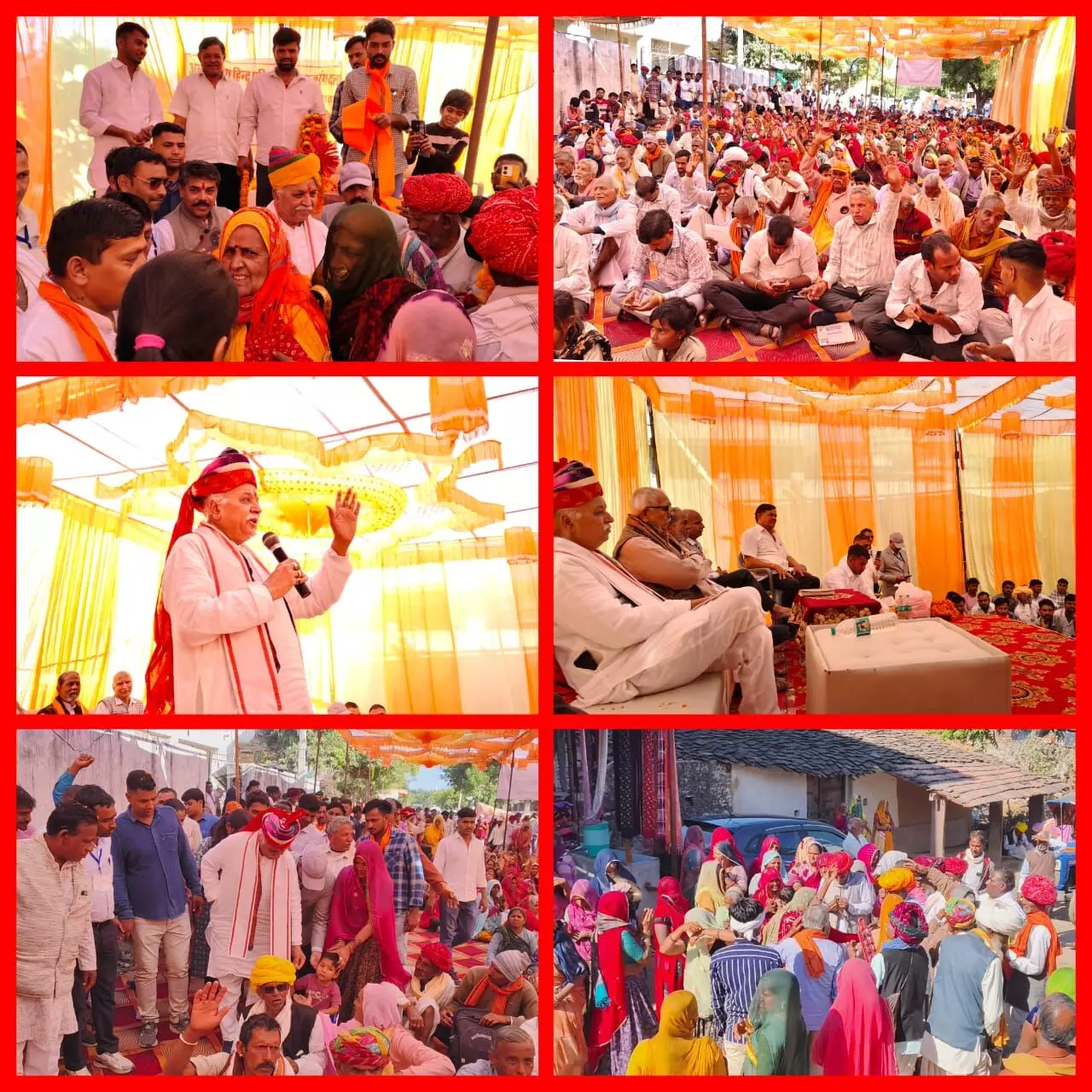 सवाईपुर ( सांवर वैष्णव ):- अंतर्राष्ट्रीय हिंदू परिषद एवं राष्ट्रीय बजरंग दल के राष्ट्रीय अध्यक्ष डॉ प्रवीण तोगड़िया सोमवार दोपहर को सवाईपुर पहुंचे, जहां बजरंग दल, विश्व हिंदू परिषद के कार्यकर्ताओं व ग्रामीणों द्वारा भव्य स्वागत किया गया, इस दौरान सभा को संबोधित करते हुए राष्ट्रीय अध्यक्ष डॉ. प्रवीण तोगड़िया ने कहा कि गांवों में प्रत्येक शनिवार व मंगलवार को हनुमान चालीसा का पाठ करना, मोबाइल को चार्जिंग करेंगे तभी बात होगी, चार्जिंग खत्म होने पर बात नहीं होगी, जब हम भोजन करेंगे तो उससे शरीर का चार्जिंग होता है और नहीं खायेंगे तो चार्जिंग बंद हो जाएगा । जीवन की ऊर्जा अन्न से मिलती हैं अन्न को ऊर्जा सूर्य से और सूर्य को ऊर्जा भगवान से मिलती है, हमें भगवान की ऊर्जा सही मिलेगी तभी हमारा कल्याण होगा । राष्ट्रीय बजरंग दल के जिला अध्यक्ष अनिल साहू ने बताया की सोमवार को बिजोलिया जाते समय राष्ट्रीय बजरंग दल के राष्ट्रीय अध्यक्ष डॉ. प्रवीण तोगड़िया दोपहर 2 बजे सवाईपुर पहुंचे, इस दौरान डॉ. तोगड़िया ने एक निजी होटल का भी उद्घाटन किया, इसके बाद सवाईपुर में गोपाल लाल तेली के मकान पर भी पहुंचे । यहां से मुख्य बस स्टैंड होते हुए तेजाजी चौक सहित अन्य मार्गो से होते हुए घीसा लाल तेली के मकान पहुंचे, जहां भोजन किया तथा इसके बाद सभा को संबोधित किया, इस दौरान बड़ी संख्या में महिला पुरुष मौजूद रहे, सभा को संबोधित करने के बाद राष्ट्रीय अध्यक्ष डॉ. तोगड़िया का बजरंग दल सहित अन्य संगठनों ने माला, दुपट्टा व साफा पहनाकर स्वागत किया, वही इस दौरान तलवार भी भेंट की । विश्राम करने के बाद डॉ. तोगड़िया ने बिजोलिया के लिए प्रस्थान किया । प्रभुलाल साहू ने बताया कि इस पूर्व सोमवार प्रातः 10:15 बजे बड़े चारभुजा नाथ मंदिर से हरि बोल प्रभात फेरी प्रारंभ हुई, जो ब्राह्मणों के मंदिर, गाडरी मोहल्ला, विद्युत ग्रीड़, मुख्य बस स्टैंड, सब्जी मंडी, कुम्हार मौहल्ला होते हुए पांडाल में पहुंची, हरि बोल प्रभात फेरी से गांव का वातावरण भक्तिमय हो गया, हर तरफ हरि बोल के जयकारें गुज उठे, आसपास के 121 गांवों की हरि बोल प्रभात फेरी की मंडलियां शामिल हुई । इस दौरान चंद्र सिंह,घनश्याम जोशी,प्रदेश अध्यक्ष ओम प्रजापति, पूर्व मंडल अध्यक्ष कैलाश चंद्र तिवारी, बड़लियास पंचायत समिति सदस्य दिलीप सिंह, पूर्व सरपंच अमरचंद गाडरी, पूर्व सरपंच नवरतन शर्मा, भाजपा युवा नेता भरत सिंह पडासोली, हिन्दू युवा वाहिनी जिला अध्यक्ष देवराज जाट, पूर्व पंचायत समिति सदस्य राजेश श्रोत्रिय, शांतिलाल आचार्य, भैरू शर्मा बड़ला, जगदीश लोहार, पन्नजी जैन, दीपक जैन, मुकेश श्रोत्रिय, जगदीश वैष्णव, राकेश जाट, विष्णु जाट आदि कई मौजूद रहे ।।