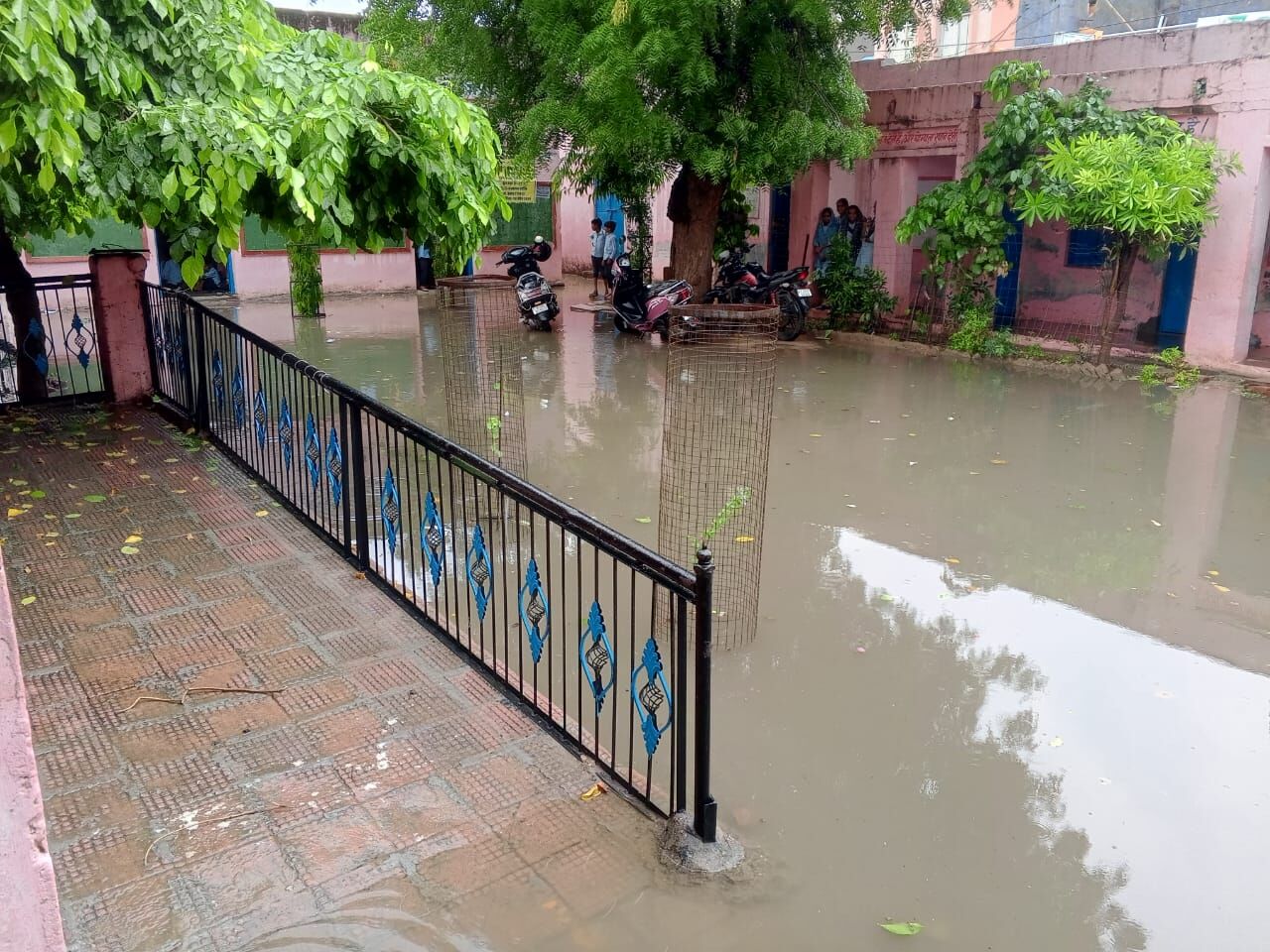 महात्मा गांधी भंवर कलां गेट स्कूल का निरीक्षण, 6 कमरे जर्जर, पानी भरने से स्कूल परिसर में फिसलन