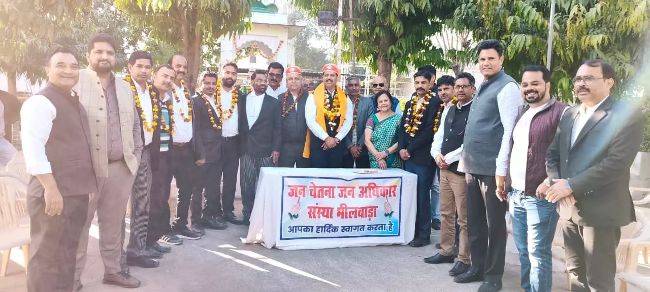 भीलवाड़ा । जन चेतना जन अधिकार संस्था, भीलवाड़ा की ओर से आज कर्मभूमि सेवालय प्रांगण में एक गरिमामय स्वागत-सम्मान समारोह आयोजित किया गया। कार्यक्रम संस्था के अध्यक्ष महेश सोनी की अध्यक्षता में संपन्न हुआ।