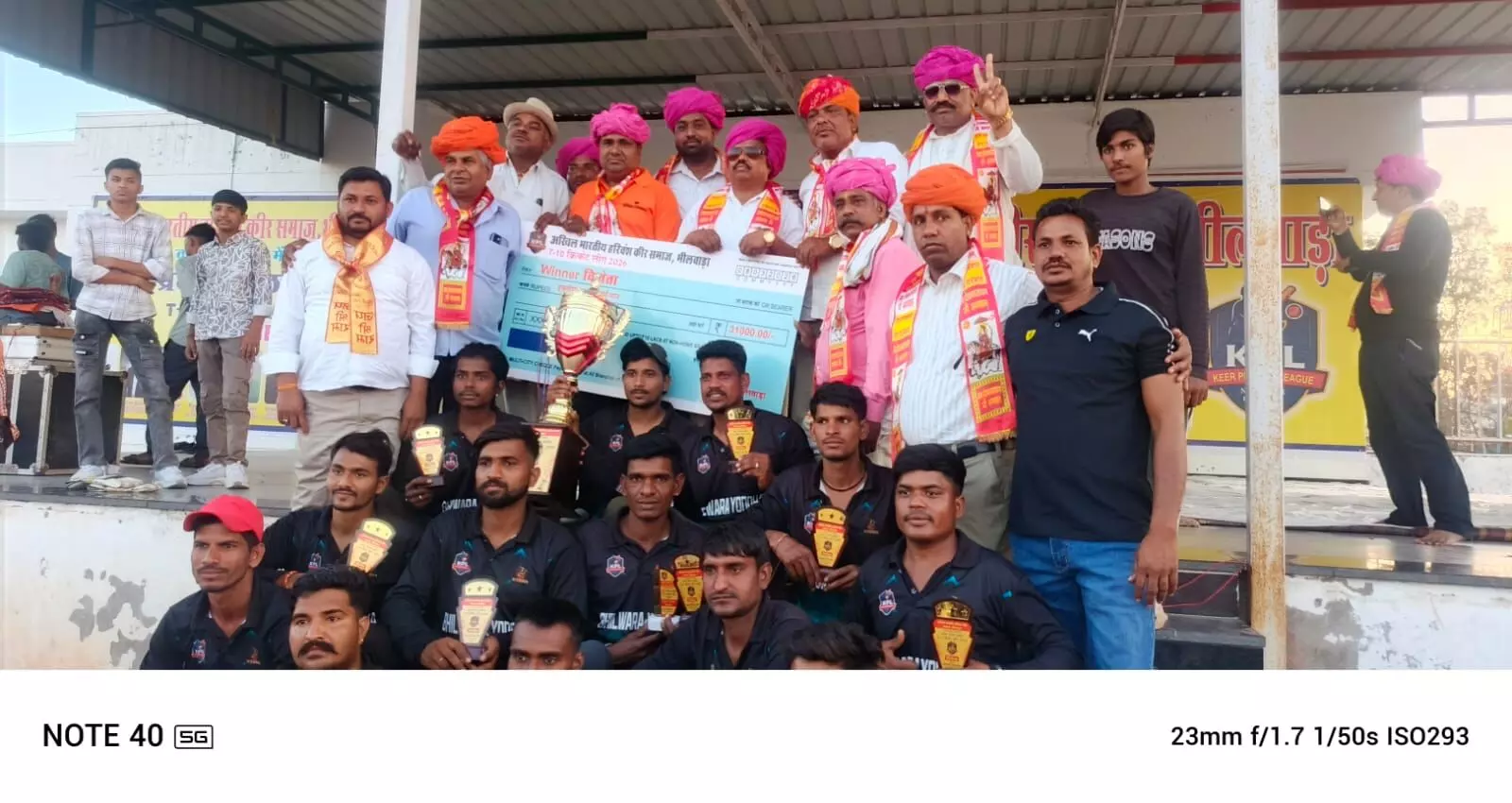 भीलवाड़ा । हरिवंशीय कीर समाज की ओर से मांडल के राजीव गांधी खेल मैदान में आयोजित क्रिकेट प्रतियोगिता के रोमांचक मुकाबलों में खिलाड़ियों ने शानदार प्रदर्शन किया। पहला सेमीफाइनल मैच भीलवाड़ा ईगल्स और भीलवाड़ा पैंथर्स के बीच खेला गया। इसमें भीलवाड़ा ईगल्स ने पहले बल्लेबाजी करते हुए 95 रन बनाए। जवाब में भीलवाड़ा पैंथर्स की टीम 78 रन ही बना सकी। इस मैच में राकेश कीर को शानदार प्रदर्शन के लिए मेन ऑफ द मैच चुना गया।दूसरा सेमीफाइनल मुकाबला भीलवाड़ा टाइगर्स और भीलवाड़ा योद्धा के बीच खेला गया। पहले बल्लेबाजी करते हुए भीलवाड़ा टाइगर्स ने 77 रन बनाए। लक्ष्य का पीछा करते हुए भीलवाड़ा योद्धा की टीम ने शानदार बल्लेबाजी करते हुए मात्र 6 ओवर में ही मैच जीत लिया। इस मैच में मनोहर कीर को मेन ऑफ द मैच घोषित किया गया।फाइनल मुकाबला भीलवाड़ा योद्धा और भीलवाड़ा ईगल्स के बीच खेला गया। पहले बल्लेबाजी करते हुए भीलवाड़ा योद्धा ने 10 ओवर में 141 रन का बड़ा लक्ष्य खड़ा किया। जवाब में भीलवाड़ा ईगल्स की टीम 97 रन ही बना सकी और भीलवाड़ा योद्धा ने 44 रन से फाइनल मुकाबला जीतकर खिताब अपने नाम कर लिया। फाइनल मैच में शानदार प्रदर्शन के लिए अमरगढ़ के जगदीश कीर को मेन ऑफ द मैच चुना गया।प्रतियोगिता में जगदीश कीर (चमनपुरा) को मेन ऑफ द सीरीज तथा बेस्ट बॉलर का खिताब दिया गया, जबकि नारायण कीर (समेलिया) को बेस्ट बैट्समैन चुना गया।