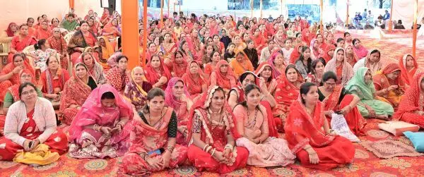 भागवत कथा में कृष्ण-रुक्मणि विवाह प्रसंग सुनाया, महिलाओं ने की फूलों की वर्षा