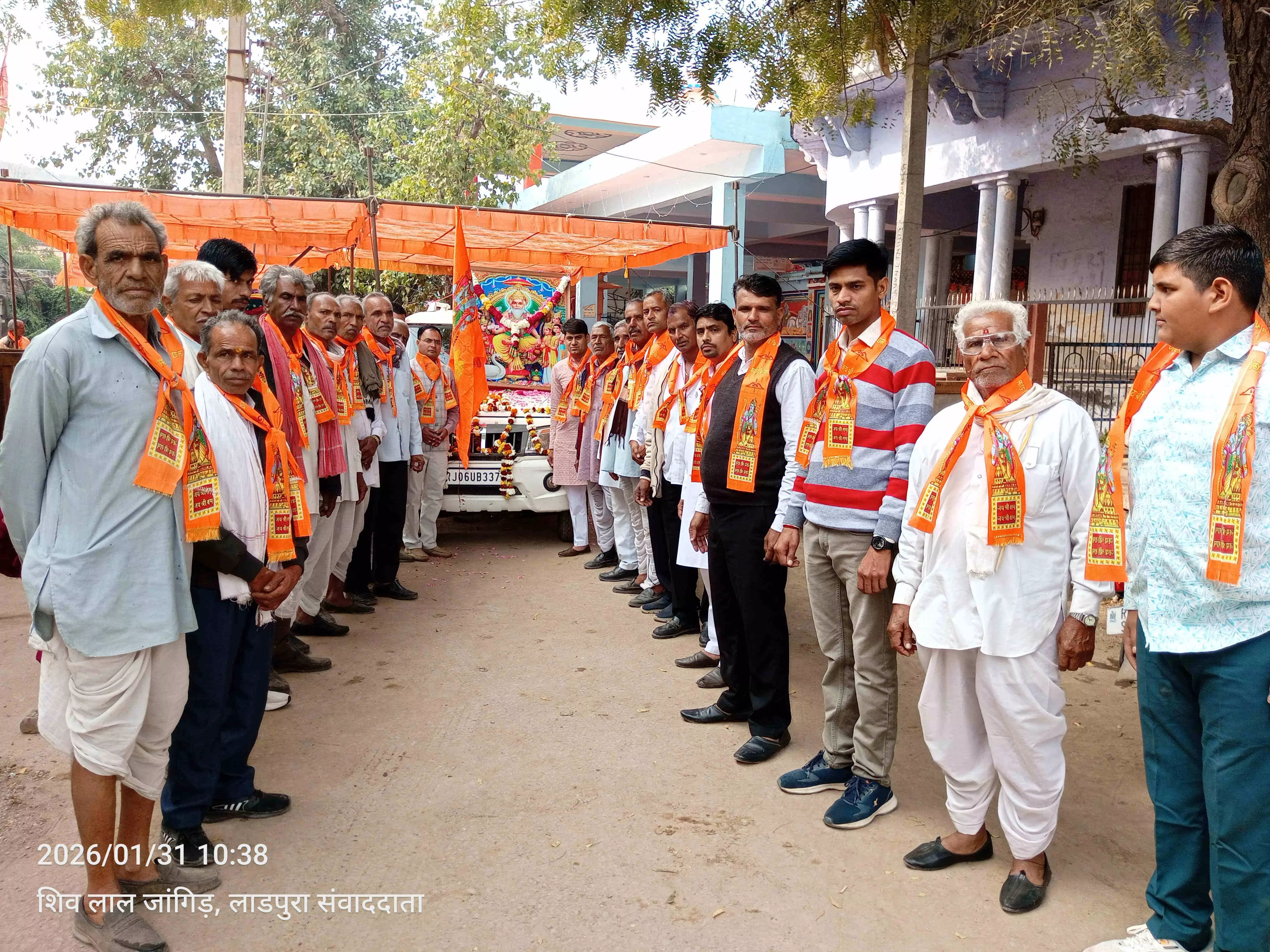 लाडपुरा ( शिव लाल जांगिड़ ) सिंगोली चारभुजा में स्थित भगवान श्री विश्वकर्मा मंदिर में शनिवार को जांगिड़ समाज आम छोकला द्वारा विश्वकर्मा जयन्ति हर्षोल्लास के साथ मनाया गया। इस पावन अवसर पर शोभायात्रा निकाली गई। चारों ओर भगवान श्री विश्वकर्मा के जयकारों से वातावरण धर्ममय हो गया। समाजसेवी सत्यनारायण सुथार ने बताया कि शोभायात्रा विश्वकर्मा मंदिर परिसर से भगवान विश्वकर्मा नाथ की झांकी सजा प्रातः 10 बजे से गाजे-बाजे के साथ शुरू होकर सिंगोली बस स्टैंड, एवं मुख्य मार्गों से होते पुनः विश्वकर्मा मंदिर परिसर पहुंची। मार्ग में जगह-जगह ग्रामीणों और श्रद्धालुओं ने भगवान की आरती उतारी और पुष्प वर्षा कर भव्य स्वागत किया। यात्रा के पुनः मंदिर परिसर पहुँचने पर महाआरती का आयोजन किया गया। श्रद्धालुओं ने भगवान के दर्शन कर सुख-समृद्धि और खुशहाली की कामना की। विश्वकर्मा मंदिर पर शोभायात्रा पहुंचने पर समाज बंधुओं द्वारा स्वागत कर समापन किया गया। इस अवसर पर जांगिड़ समाज विकास कमेटी की बैठक आयोजित कर सामाजिक विकास पर चर्चा एवं वरिष्ठजन सम्मान समारोह किया गया। कार्यक्रम का संचालन भवानीशंकर जांगिड़ ने किया। विश्वकर्मा जयन्ति की पूर्व संध्या पर मंदिर परिसर में विशाल जागरण एवं भजन संध्या का आयोजन किया गया। इसमें प्रसिद्ध कलाकार युवराज वैष्णव,(मंडल) ने भगवान श्री विश्वकर्मा जी के भजनों की प्रस्तुतियां दीं। देर रात तक चली इस भजन संध्या में भक्त भक्ति रस में सराबोर होकर झूमते नजर आए। इस अवसर पर सिंगोली जांगीड़ समाज विकास कमेटी द्वारा मांडलगढ़ विधायक गोपाल खंडेलवाल, मांडलगढ़ प्रधान जितेंद्र मूंदड़ा, बाणमाता शक्तिपीठ अध्यक्ष अशोक कुमार शर्मा, एवं जनप्रतिनिधि का माला एवं दुपट्टा पहनाकर स्वागत किया गया। इस दौरान त्रिवेणी जांगिड़ समाज विकास कमेटी अध्यक्ष कैलाश चंद्र सुथार, सिंगोली अध्यक्ष कन्हैयालाल सुथार, मोडू लाल सुथार, मदन लाल सुथार, सहित समाज के प्रबुद्धजन उपस्थित थे।