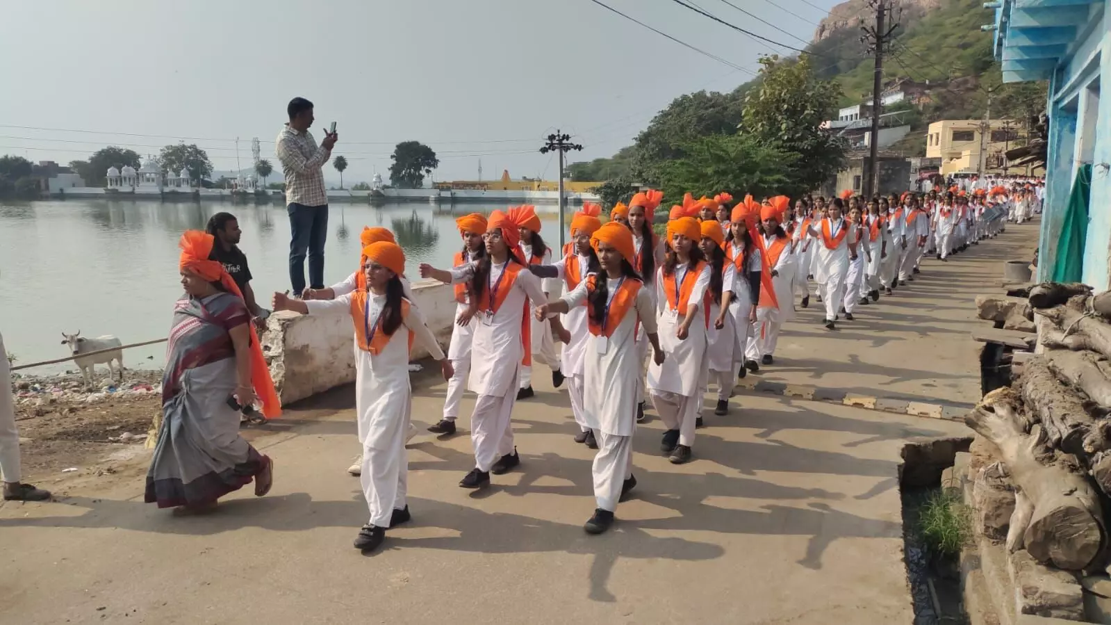 स्थानीय विद्यालय के प्रधानाचार्य गणपतसिंह वर्मा ने बताया कि, संचलन भैया बहिन की घोष वाहिनी के साथ कदम से कदम मिलाते हुए भक्त निवास से प्रारम्भ होकर सार्वजनिक निर्माण विभाग की गली से खण्डेलवाल मार्केट से गुजरते हुए स्टेच्यू सर्किल, बस स्टेण्ड, गाँधी चौक की गलियों से होते हुए विद्यालय परिसर में सम्पन्न हुआ। संचलन का नगर में गुजरते समय नगरवासियों एवं विभिन्न संगठनों द्वारा जगह-जगह जयघोष की ध्वनी के साथ पुष्प वर्षा कर स्वागत किया गया ।