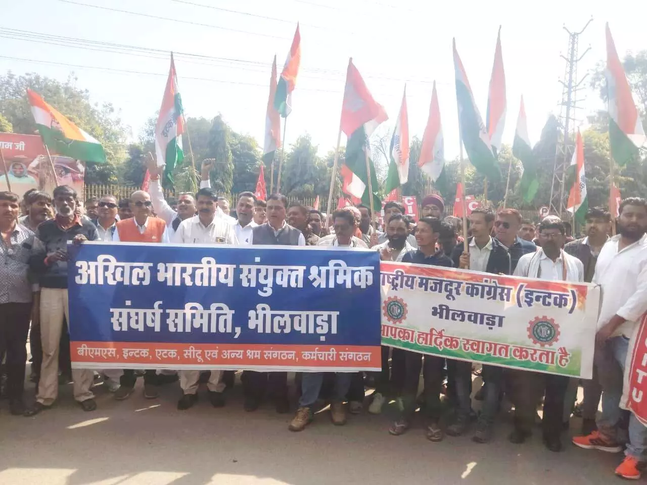 भीलवाड़ा -राष्ट्रीय श्रमिक संगठनों के आवाहन पर आज हुई राष्ट्रव्यापी हड़ताल के दौरान इंटक के संरक्षक कैलाश व्यास एवं जिला अध्यक्ष दीपक व्यास के नेतृत्व में संयुक्त श्रमिक संगठनों जिसमें सीटू एटक एचएमएस ने भीलवाड़ा जिले में संचालित टेक्सटाइल एवं औद्योगिक क्षेत्र में कार्यरत श्रमिकों एवं कमठाना श्रमिकों की समस्याओं को लेकर राष्ट्रपति महोदय के नाम जिला कलेक्टर को ज्ञापन दिया।