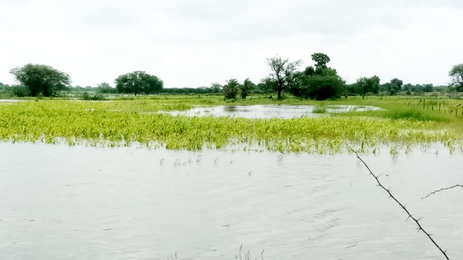 बनेड़ा (हेमराज तेली) लगातार हुई बारिश के चलते मेंघरास गांव के नये तालाब लबालब भरने पेटे में खेतों की फैसले नष्ट हो गई। फसलों की बुवाई करीब 100 बीघा जमीन थी। अब नये तालाब में पानी भर जाने से सभी फैसले पुरी तरह से पानी में डूब गई है। जिसमें मक्की की फसल ज्वार की फसल तिल्ली की फसल उड़द मूंग आदि कि फैसले पुरी तरह से खराब हो चुकी है और खेतों में पानी भर गया है। किसानों को भारी नुकसान हुआ हैं। इधर मेंघरास ग्राम पंचायत के सरपंच सांवर मल सेन ने बताया कि पटवारी को बुलवाकर मौका मुआयना कराया जाएगा जो फसल में नुकसान हुआ है।