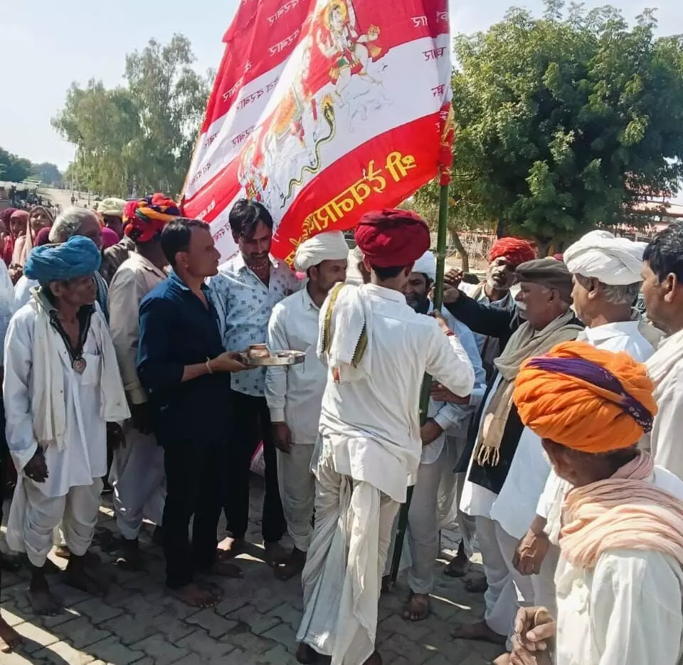 सवाईपुर ( सांवर वैष्णव ):- सवाईपुर क्षेत्र के नोहरा ( जित्यास ) गांव में काली छठ देवनारायण भगवान के यहा से हर वर्ष की भांति इस वर्ष भी बाद में माही सप्तमी से पूर्व देवनारायण भगवान की जन्म स्थली मालासेरी डूंगरी पर झंडा चढ़ाया गया । पुजारी गणेश जाट ने बताया कि माही सप्तमी से नोहरा गांव में काली छठ का देवनारायण भगवान के यहां से झंडा आज सोमवार प्रातः 9:15 बजे ट्रक के माध्यम से लेकर प्रारंभ हुई, इस दौरान हरि कीर्तन करते हुए देवनारायण भगवान के जन्मस्थली मालासेरी की डूंगरी पर पहुंचे, जहां देवनारायण भगवान को झंडा चढ़ाया गया, वही देवनारायण भगवान से क्षेत्र में सुख समृद्धि और खुशहाली की कामना की । इस दौरान उदा जाट, खाना जाट, राम सिंह, शंकरलाल, कालूलाल, भेरुलाल, भीमराज जाट, बद्रीलाल, श्रवण दरोगा, राम किशन दरोगा, अंबालाल जाट, श्रवण कुमार, कालूलाल जाट, कैलाश दरोगा सहित नोहरा व ढ़ेलाणा गांव से बड़ी संख्या में भक्तगण मौजूद रहे ।।