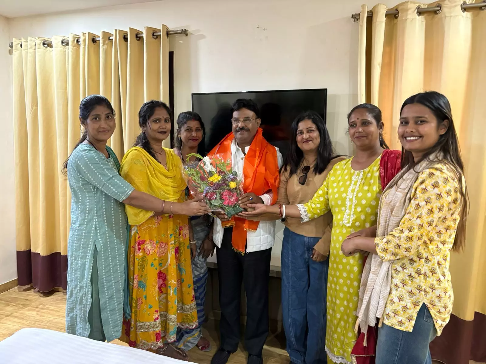 भीलवाड़ा स्थित पूर्वांचल जन चेतना समिति चैरिटेबल ट्रस्ट के पदाधिकारी ने इस अवसर पर गरमजोशी से उनका होटल रॉयल एंबेसी में स्वागत किया। पूर्वांचल जन चेतना समिति के संस्थापक अध्यक्ष रजनीश वर्मा के निर्देशानुसार समिति की कार्यकारिणी सदस्यगण रामावती देवी, अनुराधा झा, शिल्पी सिंह , पूनम झा, लक्षिता, नीलम देवी ने उनका पुष्पगुछ देकर और पटका पहन कर स्वागत किया।