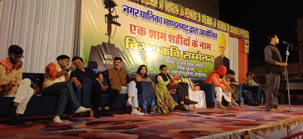 छोड़कर सारे काम यही एक काम करते हैं ये शाम प्रभु श्री राम के नाम करते हैं जैसे ही कवि ने अपनी ओजस्वी वाणी में ये पंक्तियाँ पढ़ीं, पूरा पंडाल तालियों की गड़गड़ाहट से गूँज उठा।सोमवार रात नगर पालिका मांडलगढ़ की ओर से आयोजित 'एक शाम शहीदों के नाम' राष्ट्रीय कवि सम्मेलन का। विधायक गोपाल खंडेलवाल के सान्निध्य और भाजपा जिला अध्यक्ष प्रशांत मेवाड़ा के मुख्य अतिथि में आयोजित यह अखिल भारतीय कवि सम्मेलन भोर तक चला। कार्यक्रम में देश के सुप्रसिद्ध कवियों ने काव्य पाठ किया, जिसे सुनने के लिए हजारों की संख्या में श्रोता मौजूद रहे।