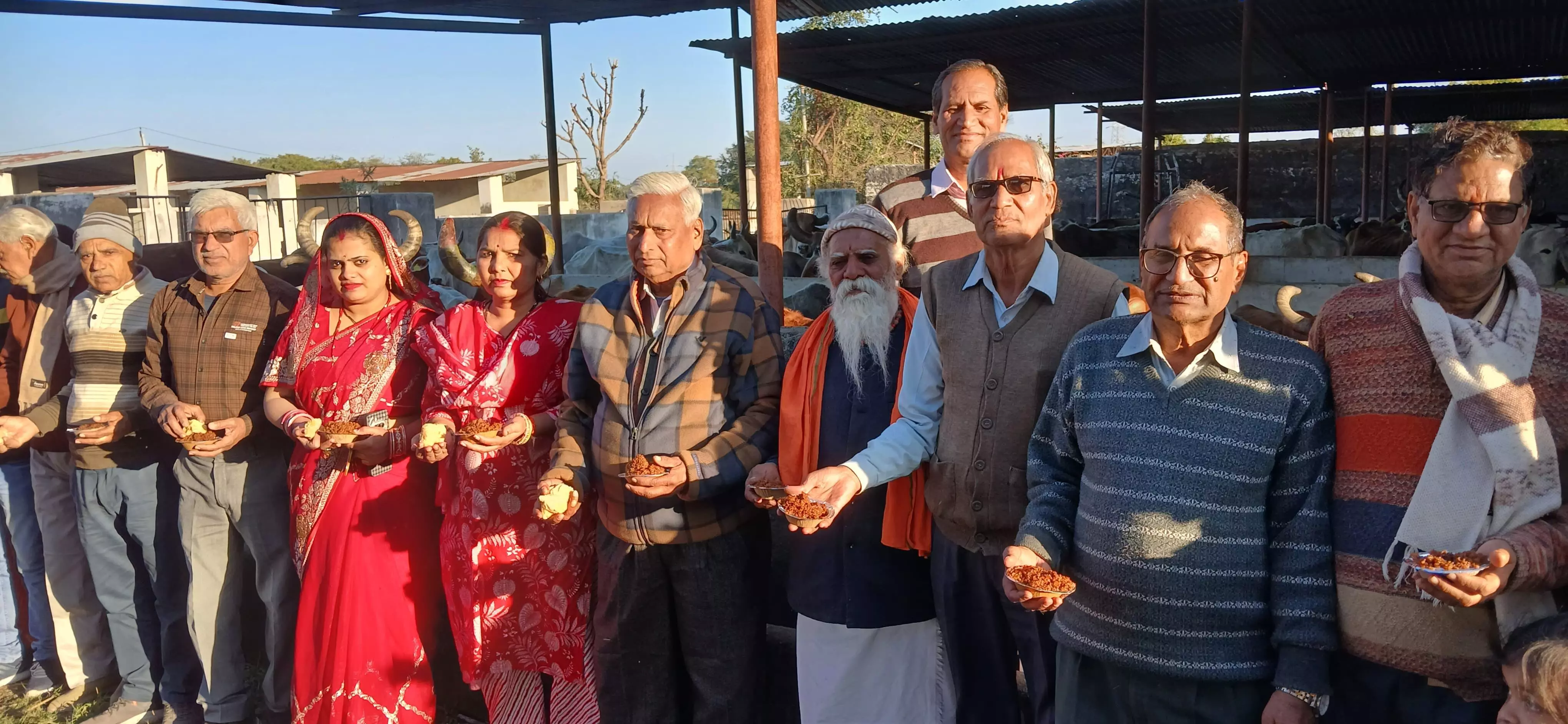 रायपुर (किशन खटीक) मकर संक्रांति महोत्सव पर श्री कृष्ण गौशाला रायपुर में महंत मदन मोहन दास महाराज, भाजपा मंडल अध्यक्ष डॉक्टर मीरा कीराड, पूर्व प्रधान कन्हैया लाल खटोड, श्री कृष्ण गौशाला के उपाध्यक्ष ओमप्रकाश झंवर, व्यवस्थापक ओमप्रकाश दाधीच,भारत विकास परिषद के संरक्षक सुभाष चंद्र झंवर, भामाशाह एवं समाजसेवी राजकुमार कोठारी बोराणा, राष्ट्रीय स्वयंसेवक संघ के संघचालक देवीलाल शर्मा, नंदीशाला के कोषाध्यक्ष रमेश चंद्र वैष्णव, भारतीय विकास परिषद के पूर्व अध्यक्ष अखिलेश बोलिया, भाजपा महामंत्री गौरव कोठारी, भाजपा उपाध्यक्ष राजेंद्र टांक,पेंशनर समाज से चंद्रशेखर देशांतरी, विधायक प्रतिनिधि भैरूसिंह सिसोदिया, भगवान स्वरूप मूंदडा, राधेश्याम काबरा, सेवानिवृत शिक्षक लादू लाल सेन, सागर मूंदड़ा, जगदीश चंद्र दाधीच, दिनेश चंद्र झंवर, कन्हैया लाल बैरवा ने गौ माताओं को लापसी एवं गुड़ का प्रसाद खिलाया। गोपालकों के लिए उनी वस्त्रों की व्यवस्था की गई। बड़ी संख्या में समाजसेवी महिला पुरुष उपस्थित थे। गौ माताओं के लिए घास हेतु दान स्वरूप नकद राशि भी प्रदान की गई।