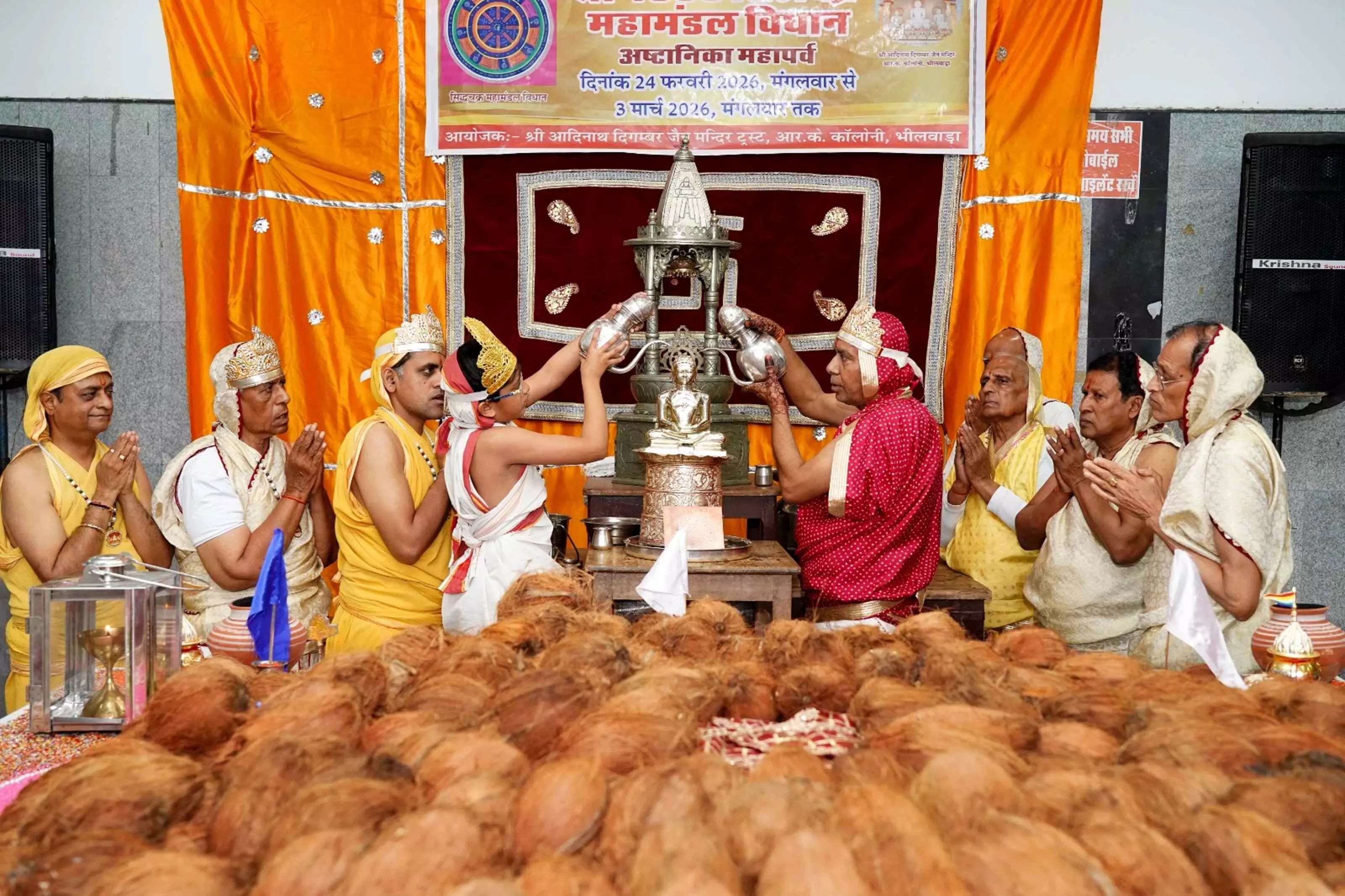 भीलवाड़ा | आर के कॉलोनी स्थित श्री आदिनाथ दिगम्बर जैन मंदिर में आयोजित श्रीसिद्ध चक्र मण्डल विधान पूजन के चतुर्थ दिवस पर श्रद्धा और आस्था का सैलाब उमड़ पड़ा। पण्डित जयकुमार के सानिध्य में चल रहे इस धार्मिक अनुष्ठान में आज नन्हें बालक की भक्ति ने सभी का दिल जीत लिया।